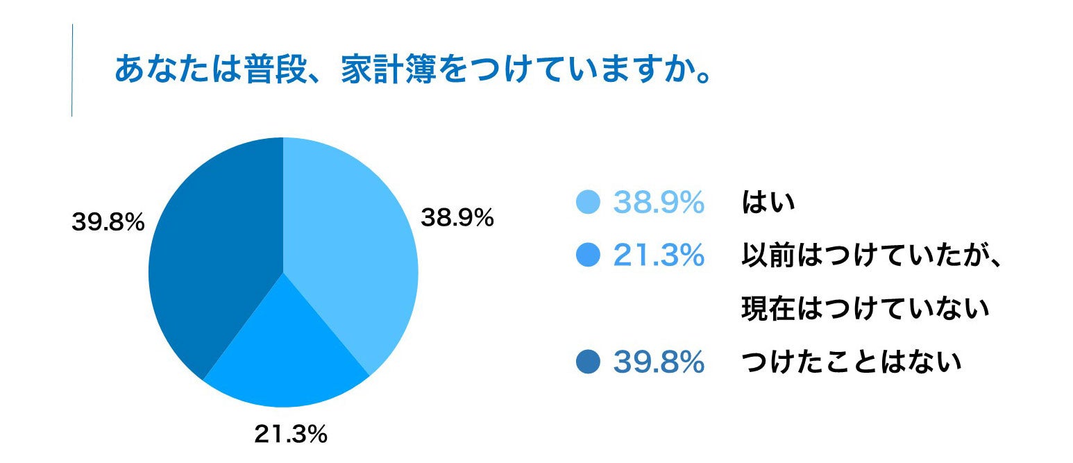 「Q5.あなたは普段、家計簿をつけていますか。」と質問したところ、「はい」が38.9%、「以前はつけていたが、現在はつけていない」が21.3%という回答となりました。