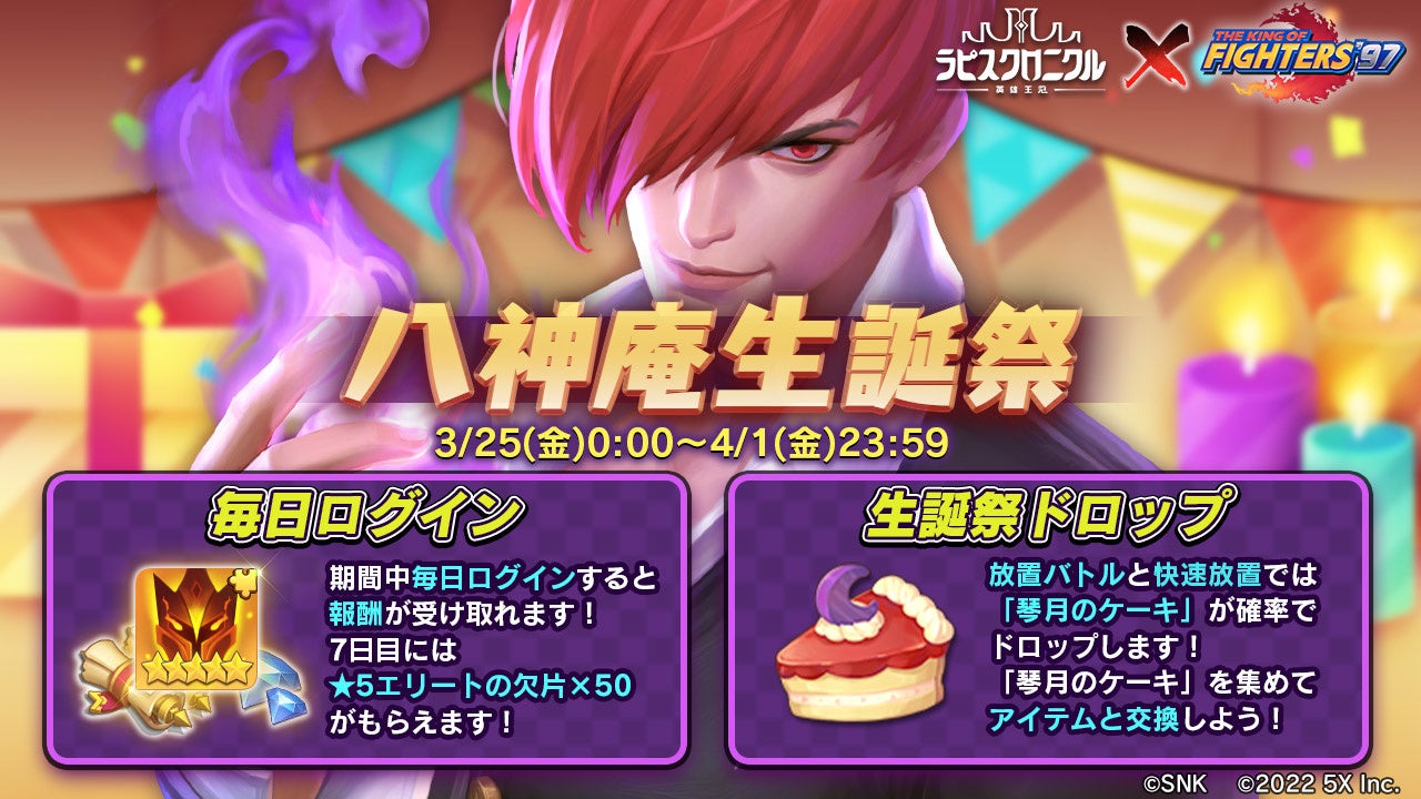 3月25日(金)は八神庵の誕生日です!ラピクルでもスペシャルイベントを開催いたします。