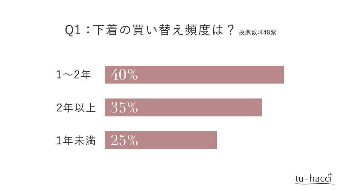 - 下着の買い替え時期は、「1~2年使用してから」と答えた人が40%