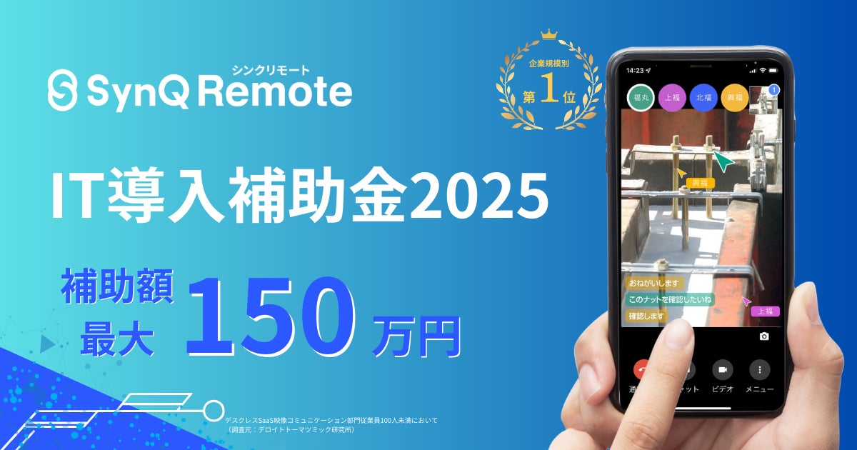 建設現場や製造現場向けの遠隔ビデオ通話ツール「SynQ Remote(シンクリモート)」を開発提供する株式会社クアンド(本社:福岡県北九州市、代表取締役CEO:下岡 純一郎)が、2025年度「IT導入補助金」においてIT支援事業者として認定されたことをお知らせいたします。