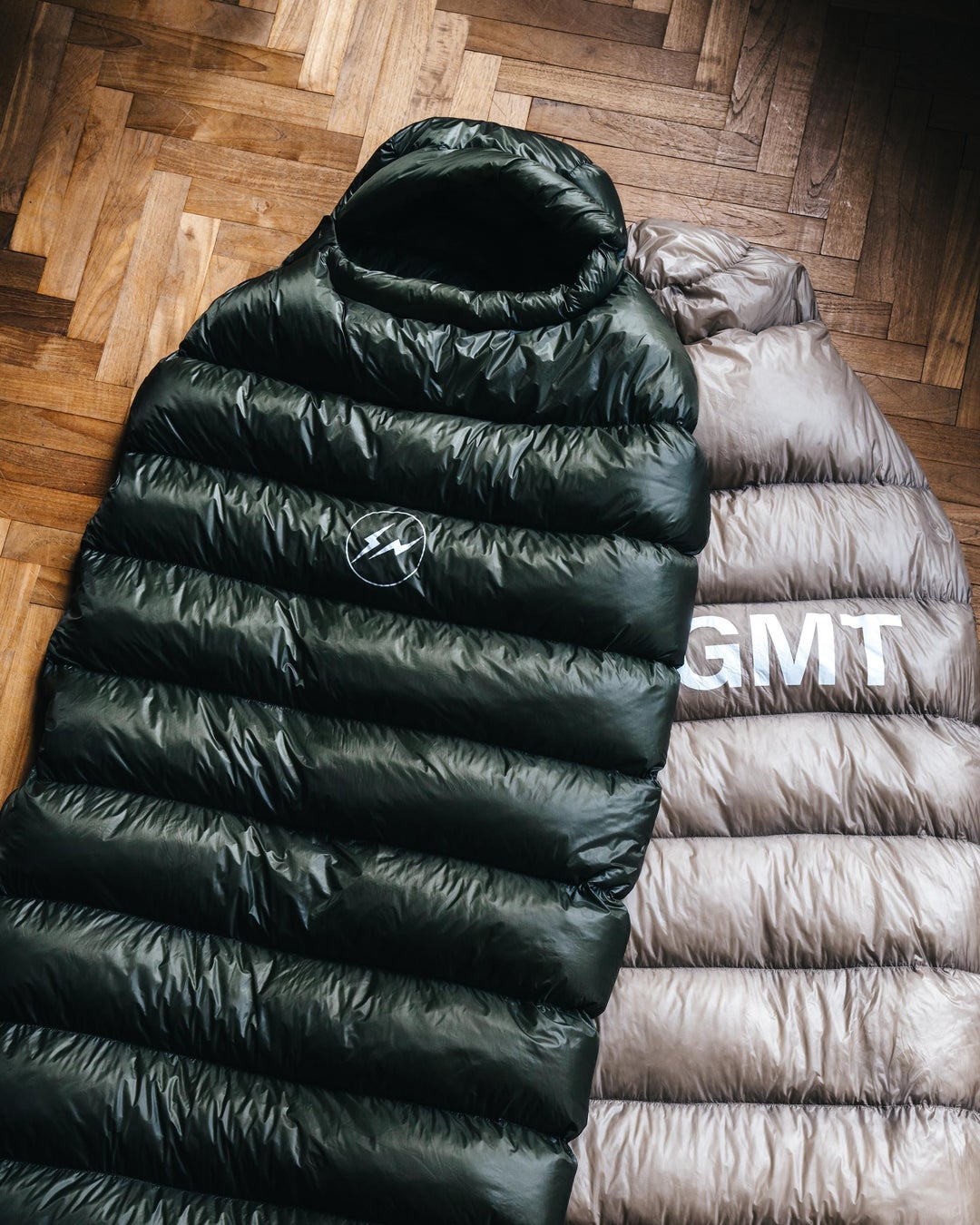 NANGA×FRAGMENT DOWN DUVETと同様のマテリアルを使用し製作された寝袋。