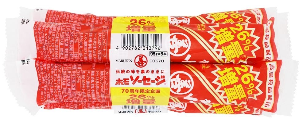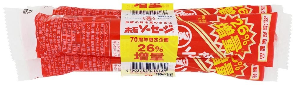 1954年の発売よりおかげさまで70周年を迎えたホモソーセージですが、今日までの感謝を込めて、期間限定の増量キャンペーンを実施いたします。