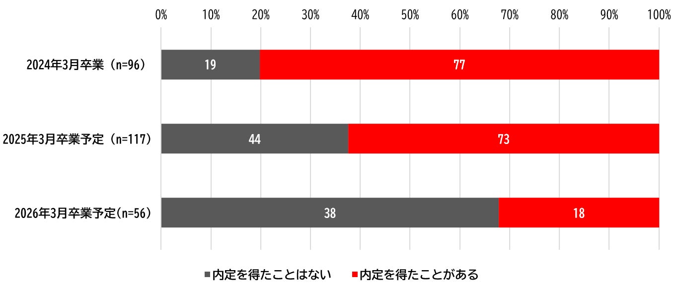 2026年卒業予定者について調査時点での内定獲得人数であるため、これから内定出しが本格化することで「カンニングを行った企業から内定を得た」人数は増加すると予想されます。