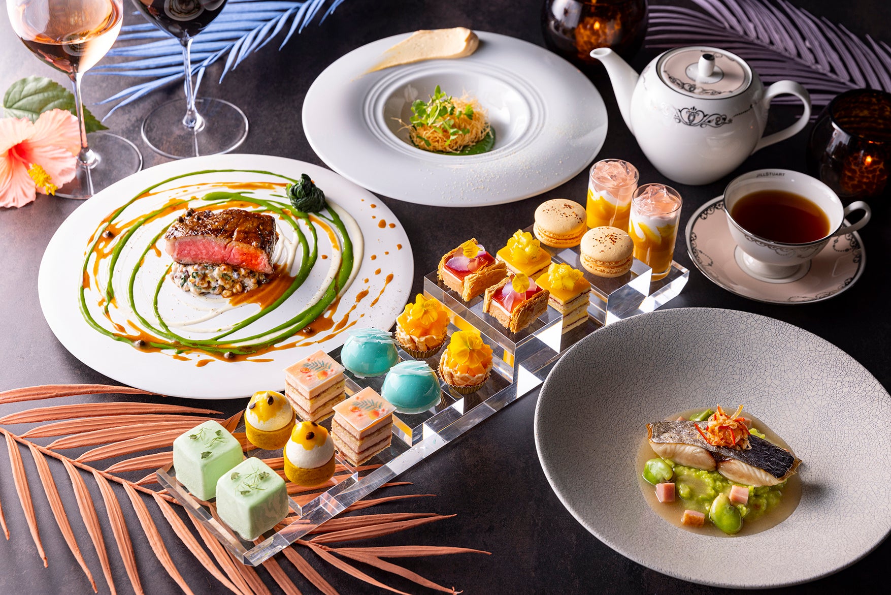 5月1日からは「アーリーサマー・アフタヌーンティー インスパイアード by ジルスチュアート」のトロピカルなスイーツがセットに。フレグランスサンプルのプレゼントも!
