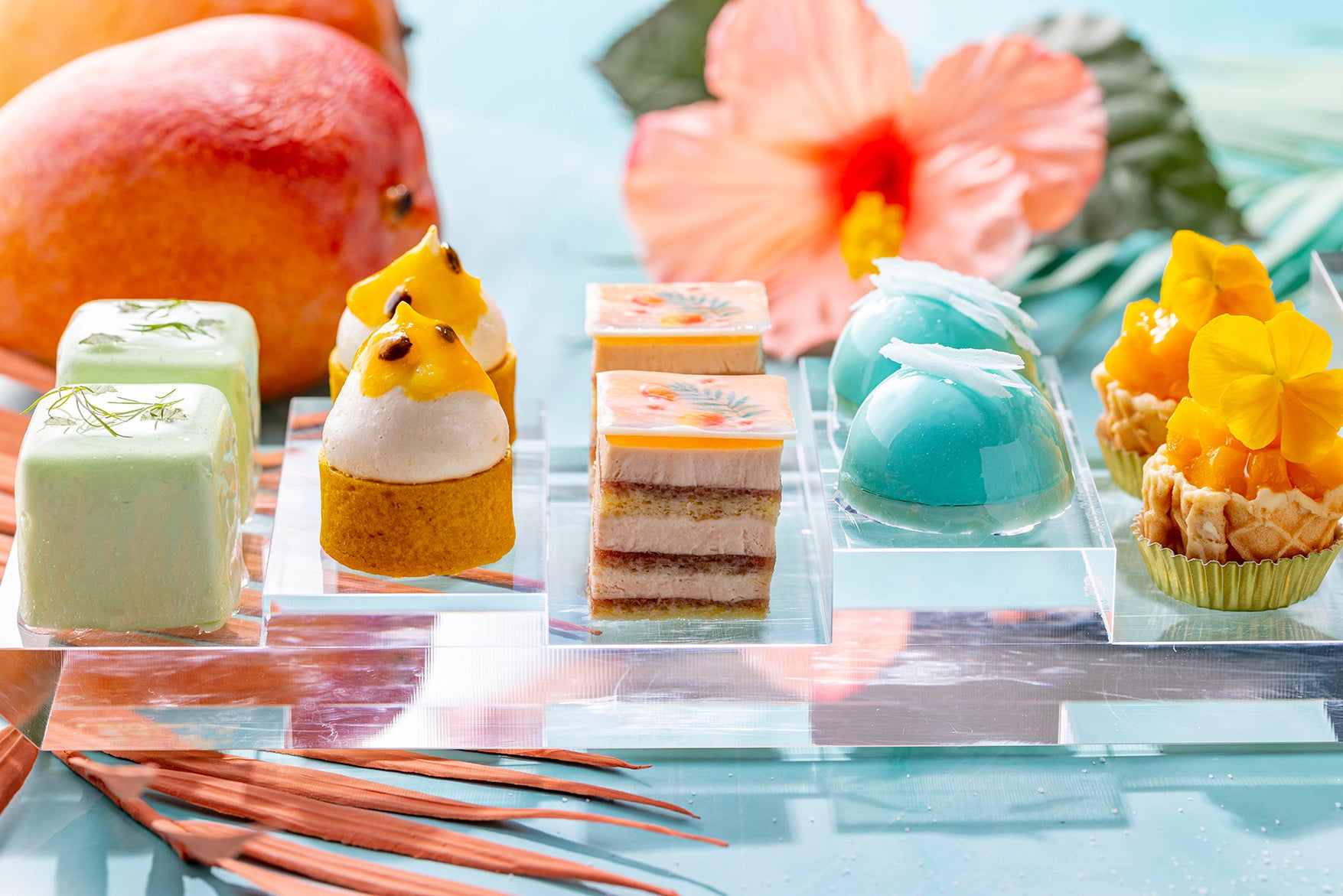 5月、6月はマンゴーやパッションフルーツなどとびっきりジューシーでトロピカルな南国の果実をつかった、夏先取りのスイーツ9種がセットに。
