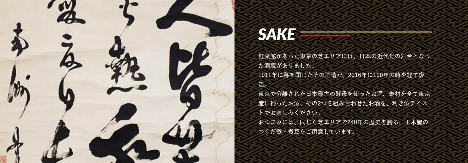 “SAKE”コンテンツでは、東京芝にある100年の時を経て蘇った23区唯一の酒蔵、東京港醸造とコラボレーション。芝に位置する東京港醸造は(旧若山屋)は、薩摩藩の御用商人であり、若山屋の奥座敷は隠密に会合を持つには格好の立地だったため多くの要人たちの密談の場となり、西郷隆盛、勝海舟、山岡鉄舟、高橋泥舟と言った歴史に名を残す偉人が頻繁に訪れていたと言われています。若山屋は1909年に一度廃業しましたが、芝エリアを盛り上げる熱意で2011年に100年の時を経て東京港醸造として蘇りました。本イベントでは、本イベントの為にセレクションした3つの日本酒を、同じく芝エリアにある創業200年を超える新橋玉木屋の佃煮・煮豆と共に、利き酒テイストでお楽しみいただきます。
