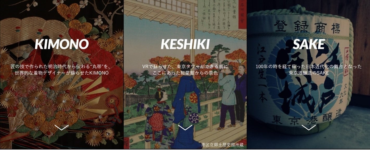 磨き上げる観光資源としては、明治初期の港区芝エリアにまつわる”KIMONO”・”KESHIKI”・”SAKE”にフォーカス。単なる展示ではなくよりディープな、ココだけでしか体験できないプレミアムコンテンツとなっております。