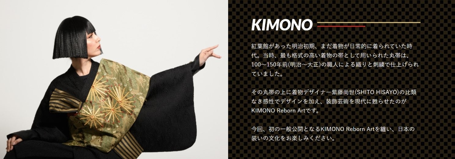 “KIMONO”コンテンツでは、世界的な着物デザイナー紫藤尚世が2022年に発表した、世界をターゲットにしたKIMONOブランド「AAAPARE(アーパレ―)」(https://aaapare.com/aaapare-jp/)とコラボレーション。明治時代の丸帯を使用したセレブリティに向けたオートクチュールの着物アートを初めて一般公開し、お召しいただきます。イベントスペースでのカジュアルラインの販売も予定しております。オートクチュールの着物のご購入をご希望の方は紫藤尚世のアトリエをご案内いたします。