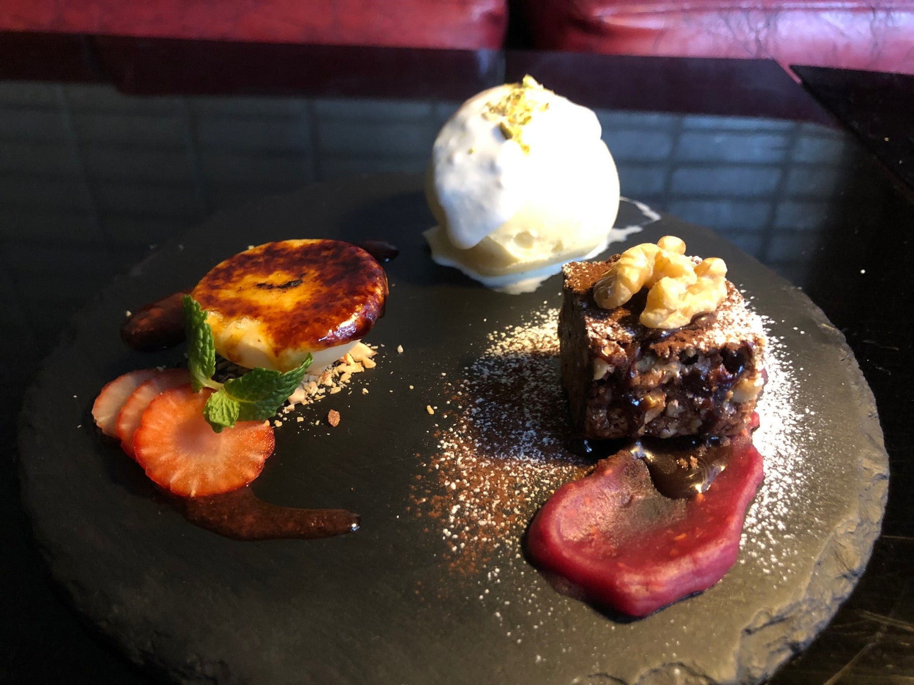・デザート3種(フォンダンショコラ、イチゴクリームブリュレ、グリークヨーグルトアイス)