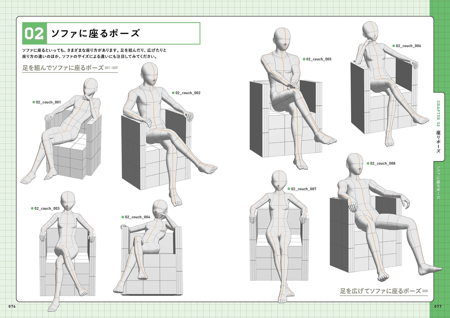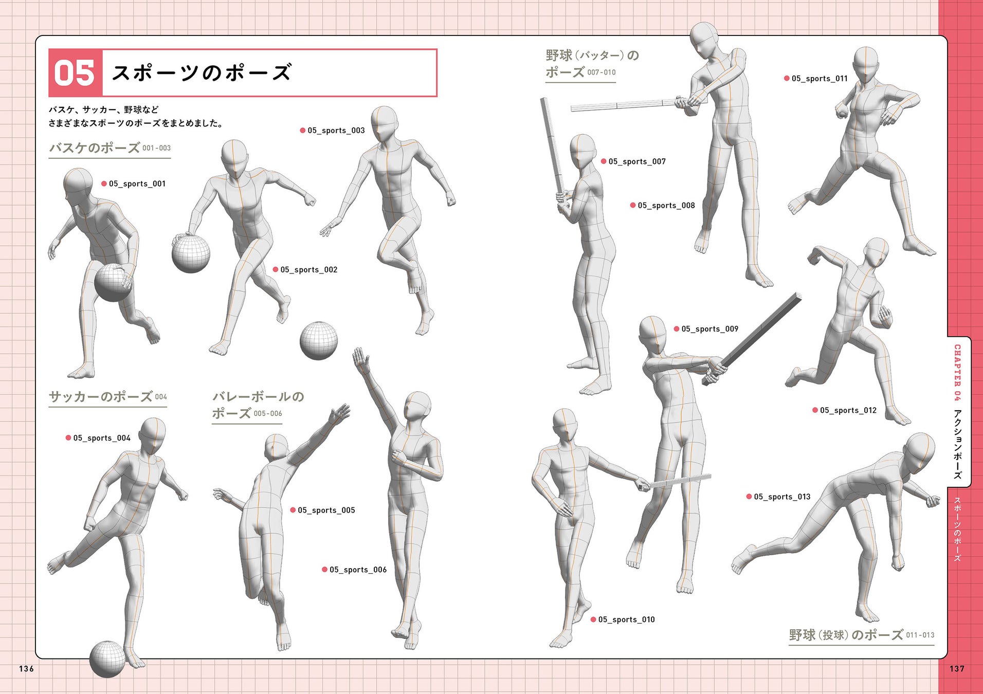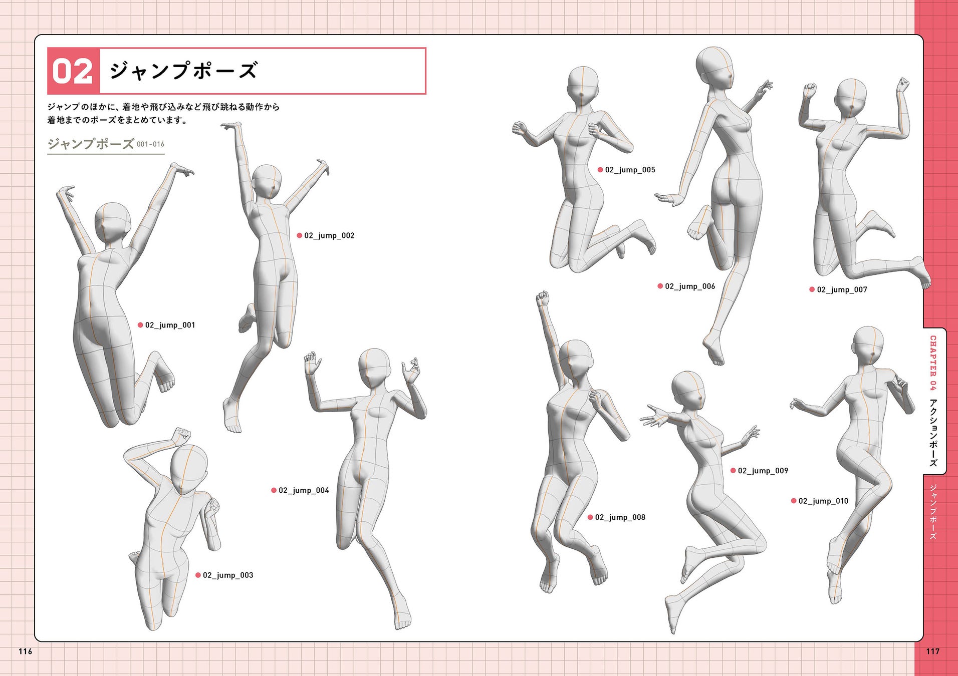 魅力的な立ちポーズや座りポーズ、さまざまなバトルシーン、スポーツシーンなど、日常シーンからアクションシーンまで、使いやすいポーズを523点収録。