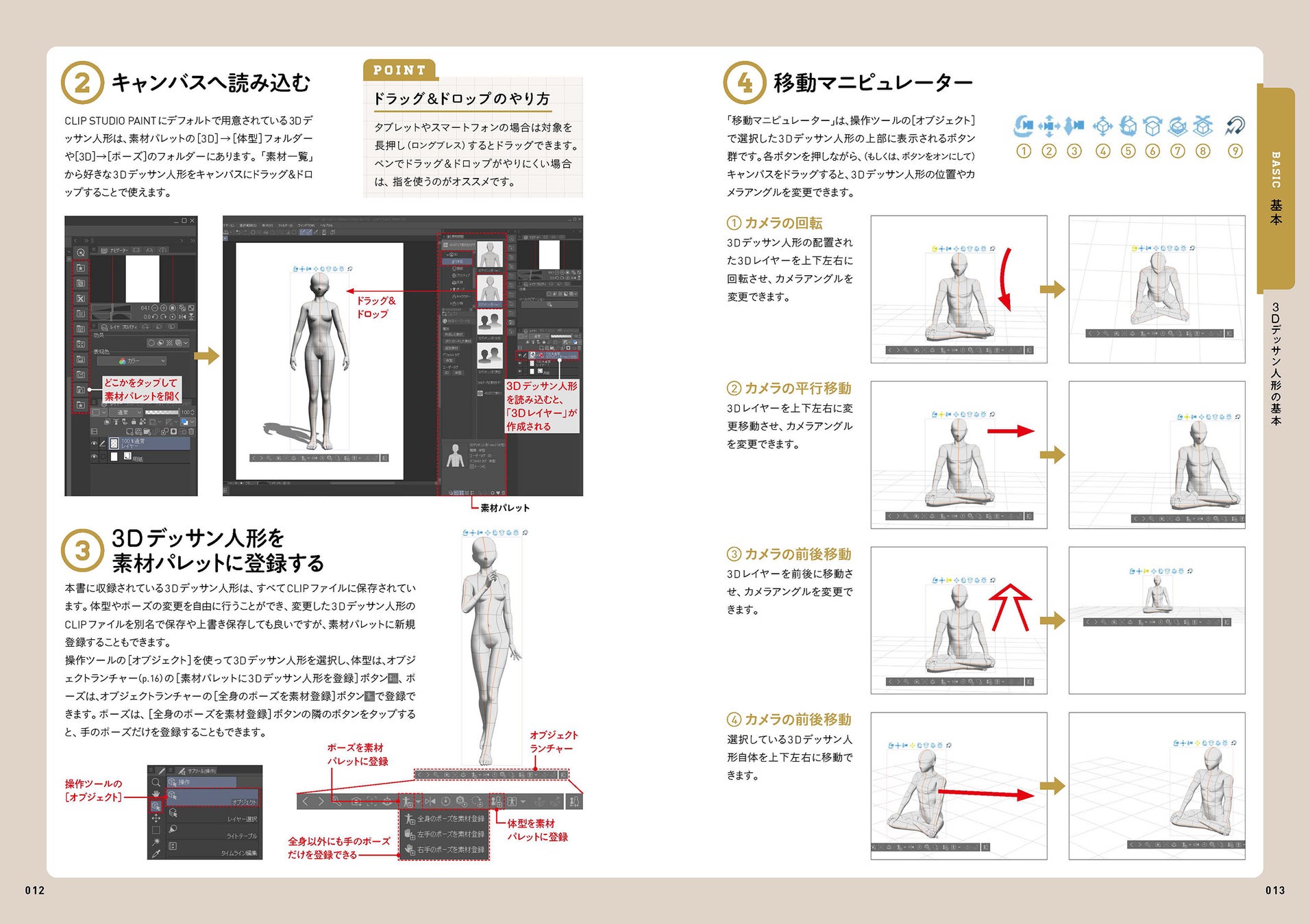 3Dデッサン人形の操作をマスターすれば、収録しているポーズをそのまま使うだけでなく、描きたいイラストに合わせた応用も可能!