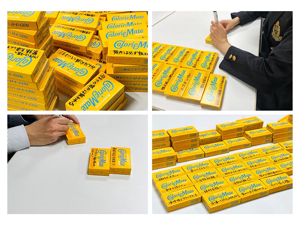 ・手書き応援メッセージ入りカロリーメイト(大塚製薬より)