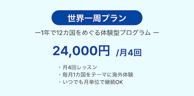 提供プラン:世界一周プラン 〜1年で12カ国を巡る英会話体験〜