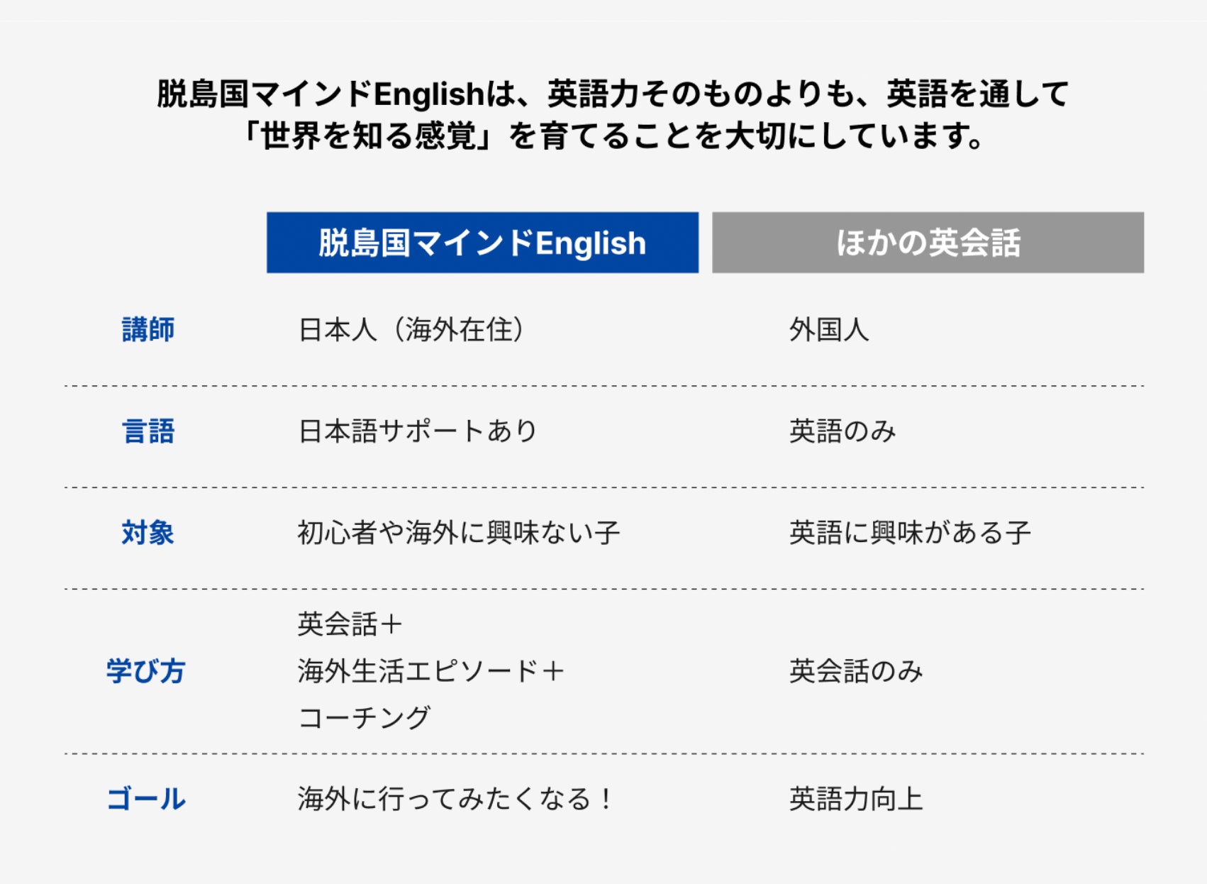 従来の英会話サービスの多くは、「英語が話せるようになること」を最終目標として、文法や発音の習得に重点を置いています。しかし、真に重要なのは、英語という言語を通じて世界への扉を開き、多様な価値観や文化に触れることで、子どもたちの視野を広げることではないでしょうか。