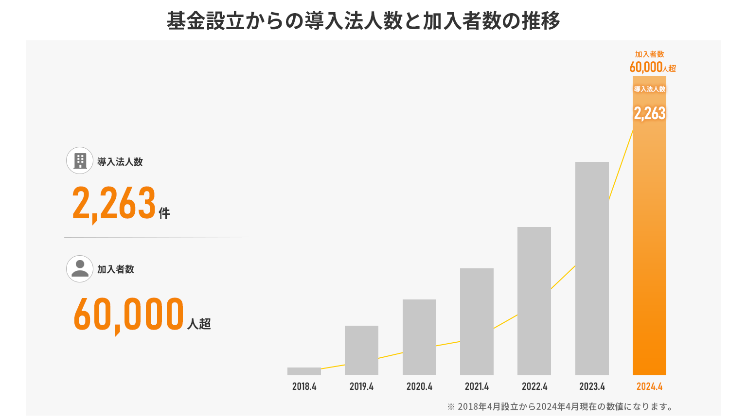 ▶︎設立から6年で加入者は6万人を超え、平均加入率は65.2%。多くの従業員の方々から支持をいただいています。