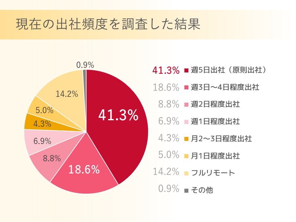 現在の出社頻度を尋ねたところ、約4割のエンジニアが週5出社していることがわかりました。