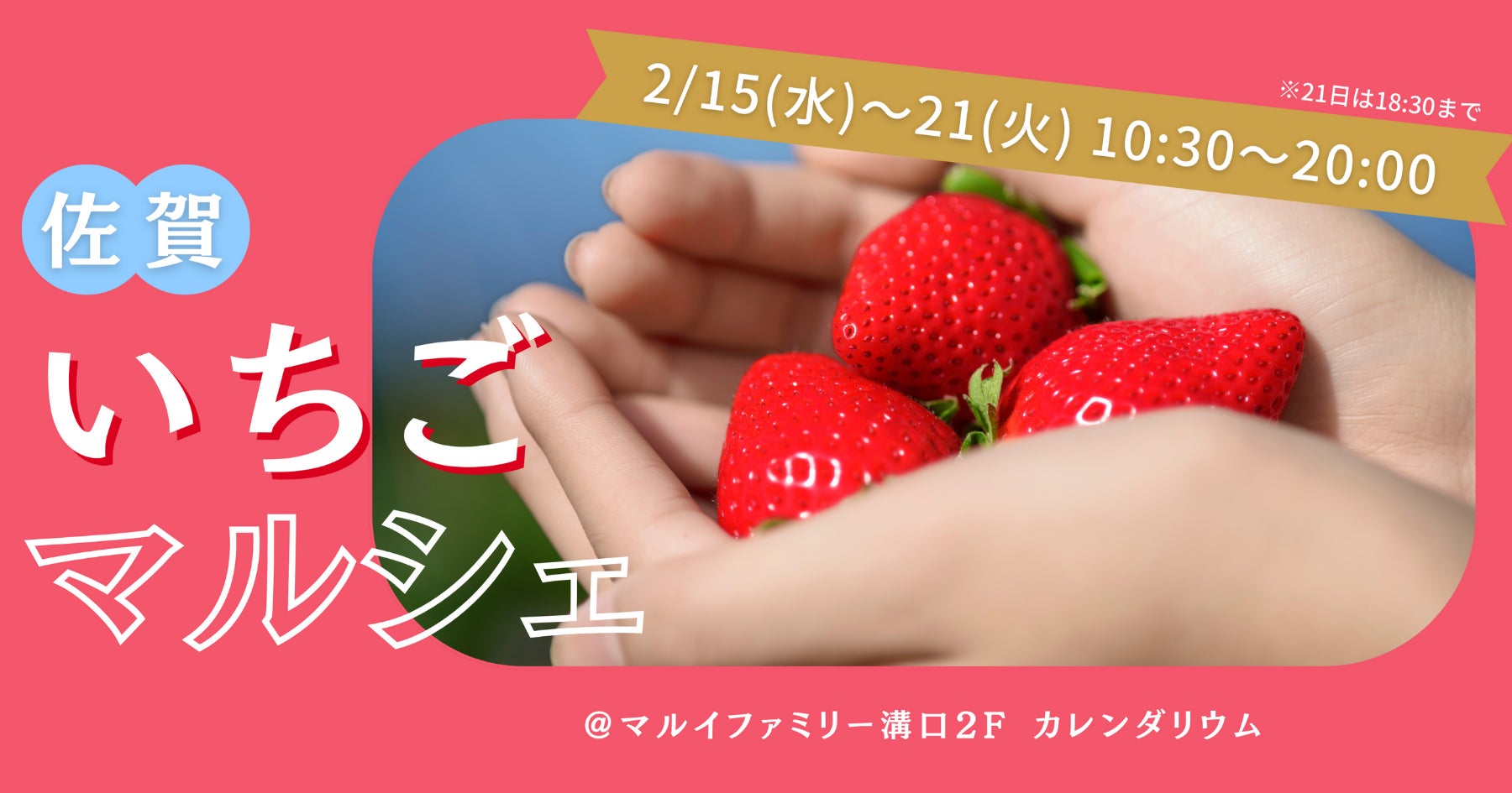 さが県産品流通デザイン公社は、園芸生産者と実需者や消費者との懸け橋となる「さが園芸888運動マッチングプロジェクト」の一環で、生産者と消費者をつなぐ国内最大級の産直アプリ「ポケットマルシェ(ポケマル)」を運営する(株)雨風太陽と連携し、神奈川県川崎市のマルイファミリー溝口2Fカレンダリウムにて、「佐賀いちごマルシェ」を 2023年2月15日(水曜日)〜21日(火曜日)の期間で開催します。