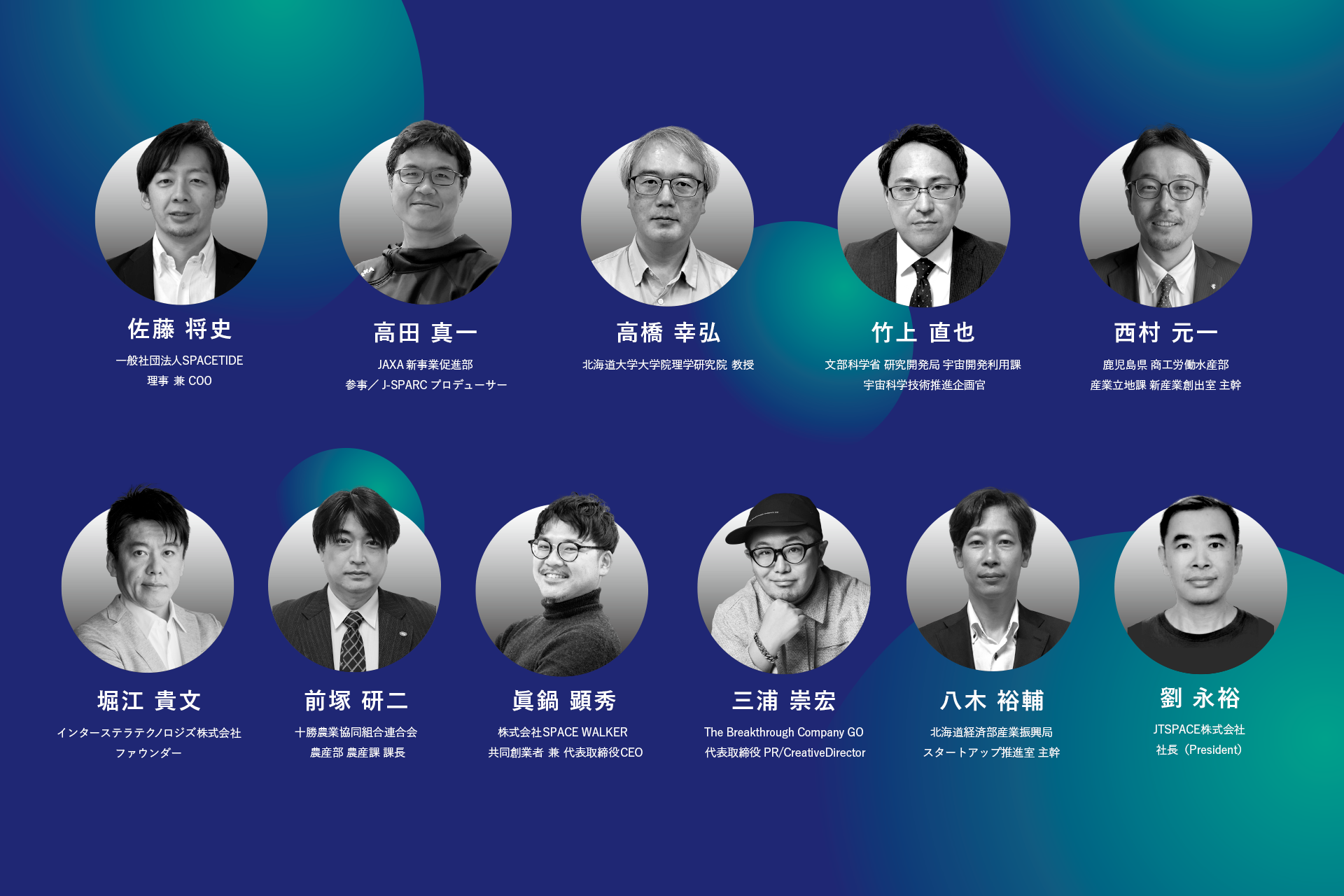 内閣府宇宙開発戦略推進事務局、文部科学省、農林水産省、国土交通省、北海道経済産業局、北海道、札幌市、帯広市、国立研究開発法人 宇宙航空研究開発機構(JAXA)、帯広商工会議所、帯広信用金庫、STARTUP CITY SAPPORO、Space Port Japan、独立行政法人 中小企業基盤整備機構、とかち航空宇宙産業基地誘致推進期成会、株式会社日本政策金融公庫、株式会社北洋銀行、NPO法人北海道宇宙科学技術創成センター(HASTIC)、北海道経済連合会、北海道商工会議所連合会