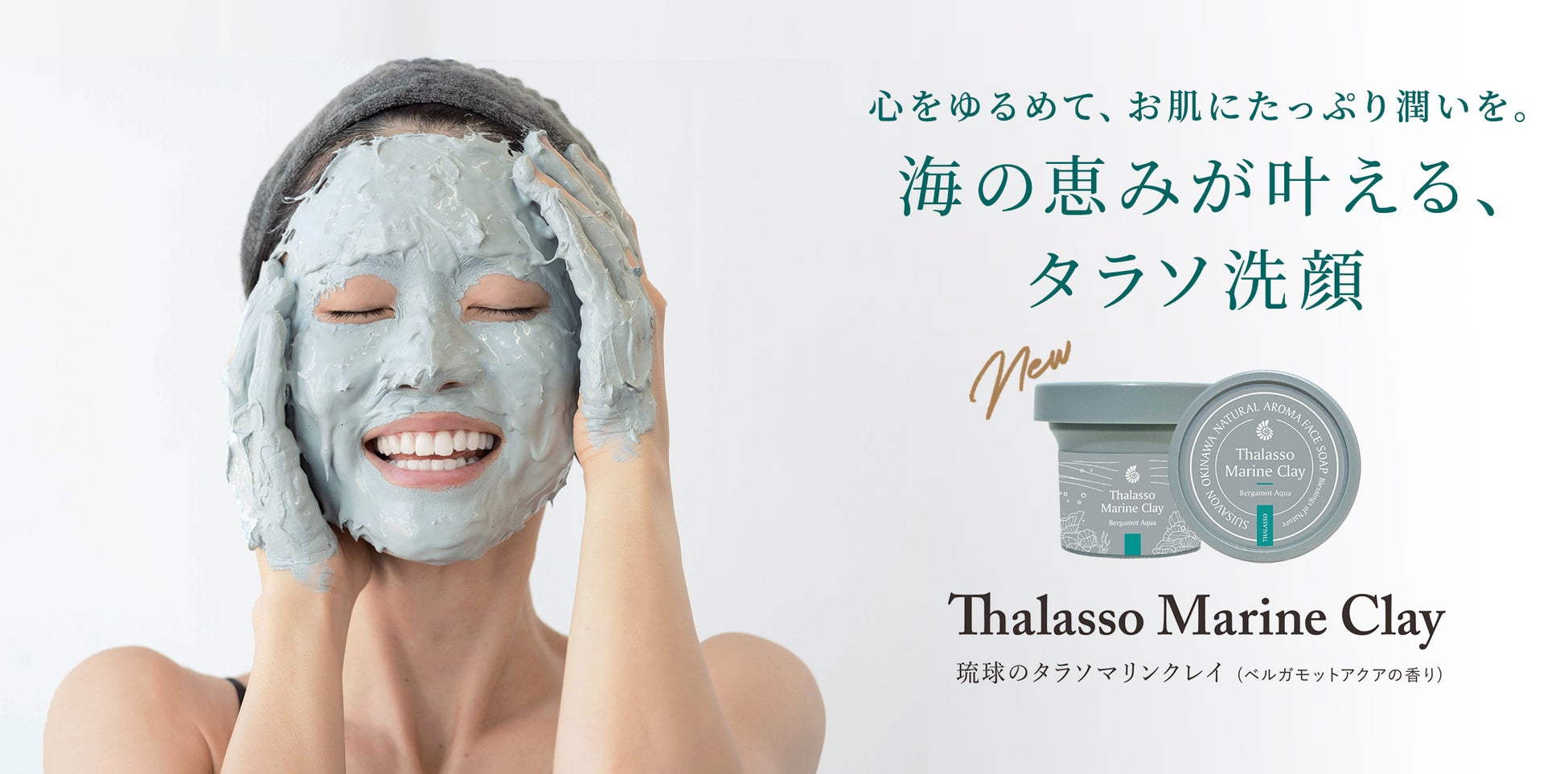 今回発売する『琉球のタラソマリンクレイ洗顔石鹸』は、沖縄の自然が与えるリラクゼーション体験に着目し、心とカラダをじんわりと潤す「タラソ洗顔」です。海の恵みが肌本来の美しさを引き出し、健やかな輝きを取り戻します。そして、何百年もの長い年月をかけて誕生したミネラル豊富な沖縄産天然クレイと天然鉱物が、不要な皮脂や角質を吸着。毛穴の汚れまでしっかり落とします。