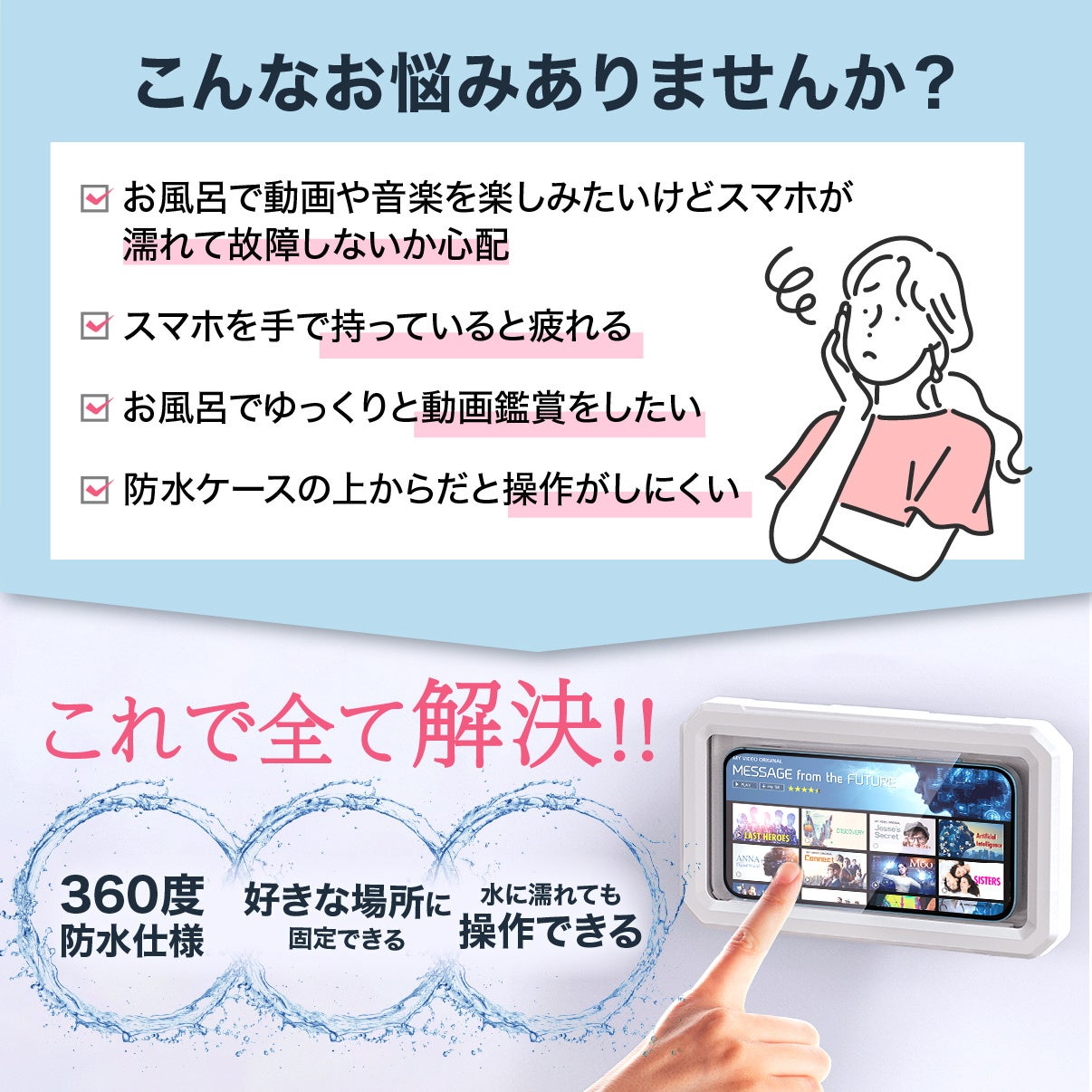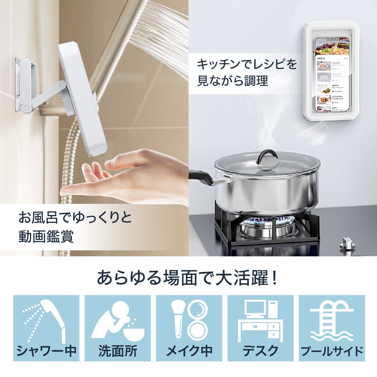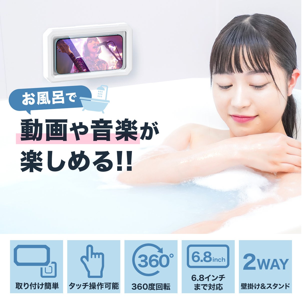 お風呂で動画や音楽が楽しめるスマホ用防水ケースを発売!iPhoneや6.8インチ以内の大きいサイズのAndroidスマートフォンにもおすすめ