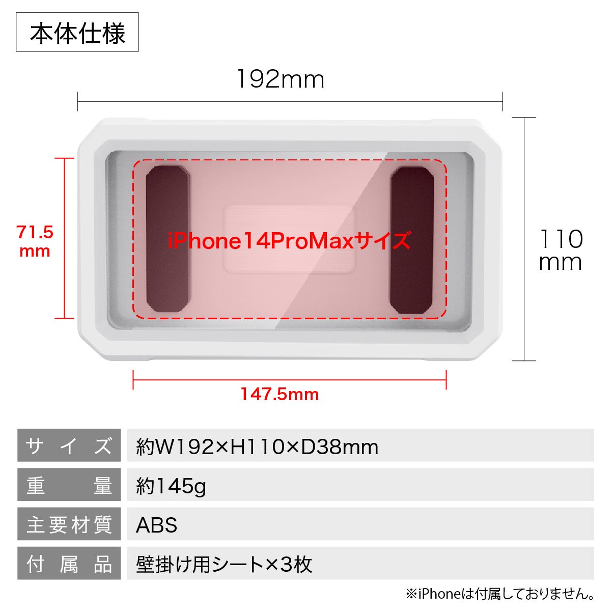 約W192×H110×D38mm