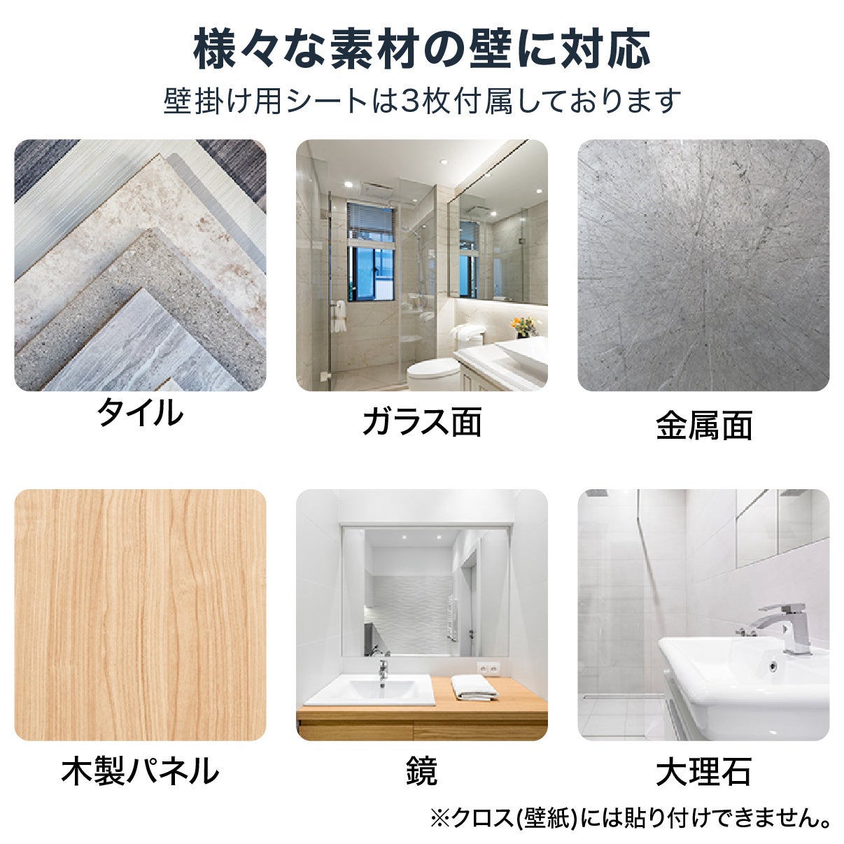 付属のシートを壁に貼り付けて壁掛け設置、背面のスタンドを使用して立てることができるので、お風呂だけでなく使用用途によって使い分けることができます。