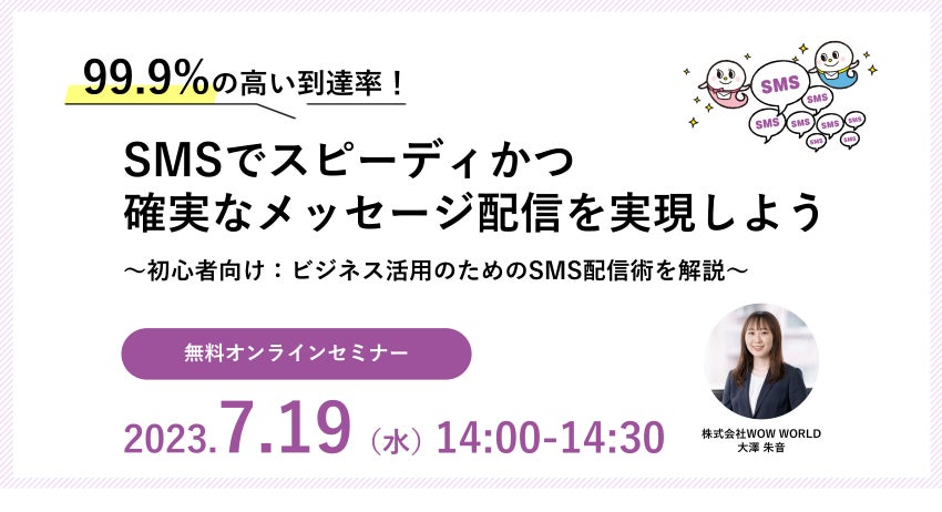 無料オンラインセミナー「99.9%の高い到達率!SMSでスピーディかつ確実なメッセージ配信を実現しよう」7月19日(水)開催のお知らせ