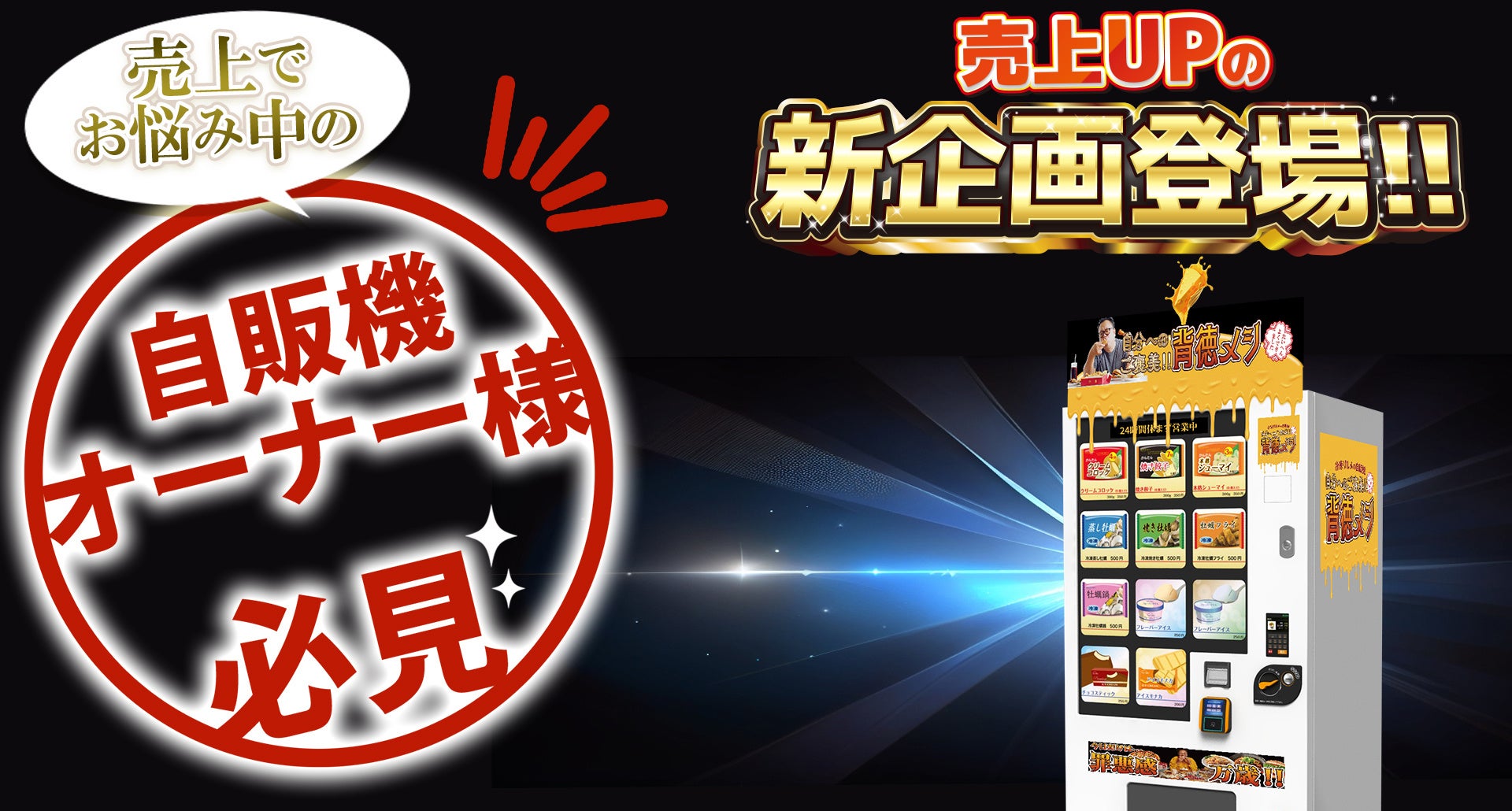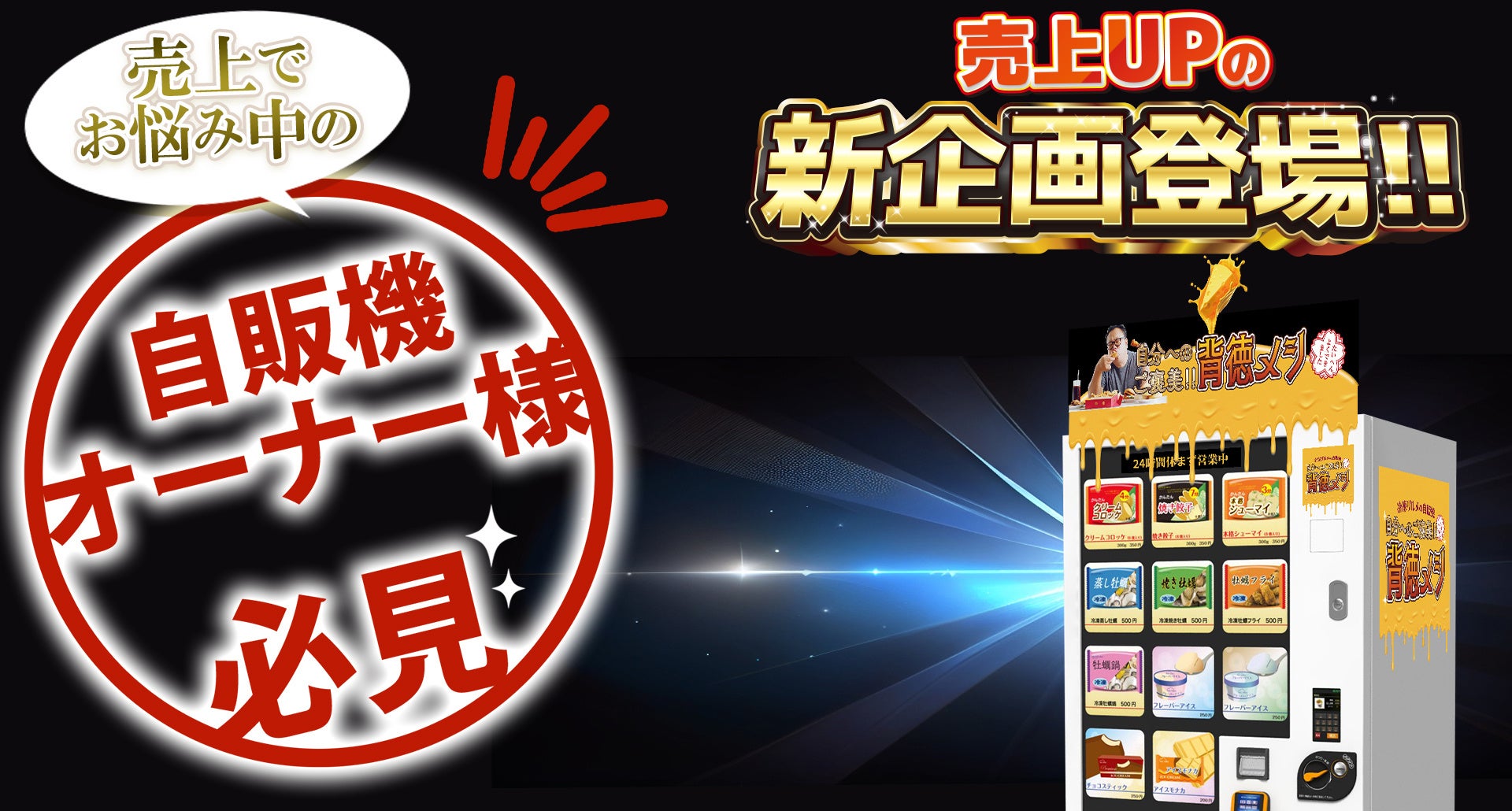自販機オーナー様必見!売上UPの新企画『自分へのご褒美!!背徳メシ』自販機登場!
