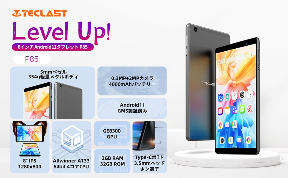 「P85」タブレットはデュアルスピーカーデザインを採用しています。期待以上のサウンド体験は可能です。音を公開できない場所でも、有線ヘッドホンを接続して音を聞くことができます。Type-Cポートで充電できます。より便利なユーザー体験も提供できます。