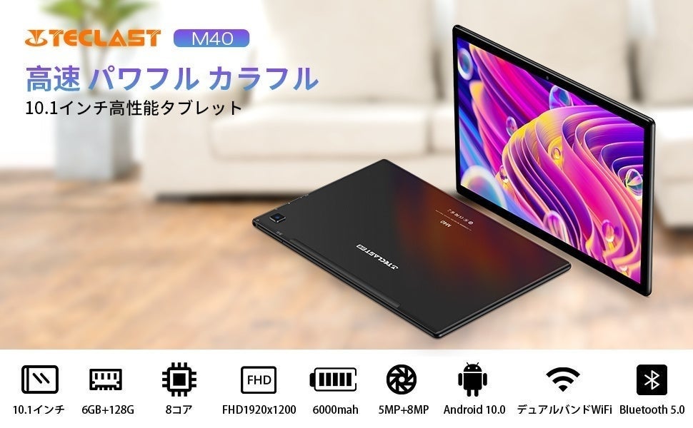 10.1インチの1920*1200高解像度IPSディスプレイを搭載。HD画質なので、きめ細かな描写が可能です。広い視野角のIPSパネルにより、写真やビデオなどを斜めの角度からも美しい映像で楽しめます満足できます。オンラン授業に適当になります。9.3mmの薄さ、ポータブルなオールメタルデザイン。より軽く、家中またはどこへでも持ち歩けるモバイルなタブレットです。