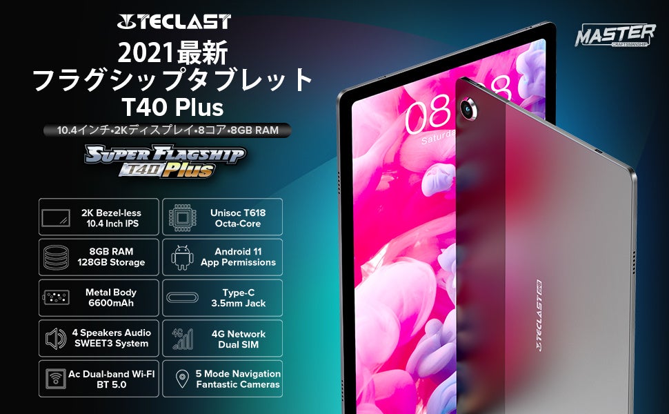 T40 PlusタブレットはUnisoc Tiger T618プロセッサを搭載し、RAM 8GB+ROM 128GB大容量メモリー、512GBまでのマイクロSDカード(別売)の拡張可能なストレージにより、複数のアプリを素早く切り替えたり、高速でスムーズな操作体験を楽しんだりできます。