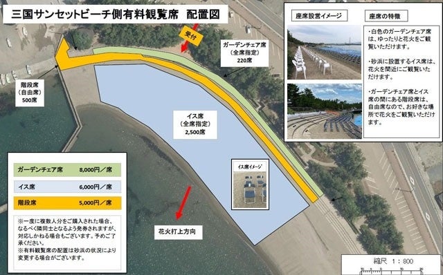 三国花火大会は無料で観覧できますが、有料観覧席も販売しており、今年は6月29日(土)10時から販売が開始されております。