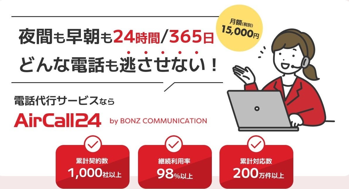 株式会社ボンズコミュニケーション(本社:神奈川県横浜市、代表取締役社長:山本 篤史)は、自社が提供する24時間365日の電話代行サービス「AirCall24」の料金改定を行いました。