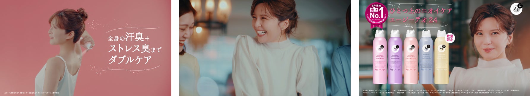 A.CM出演に関わらず、必須アイテムとして以前から「エージーデオ24」を愛用しているので、前回と前々回に引き続き、今回も出演させていただけることをとても嬉しく思っています。「エージーデオ24」を使用した毎日の快適さが皆さんに届き、それを共有できたら嬉しいなと思い、今回の撮影に挑みました。