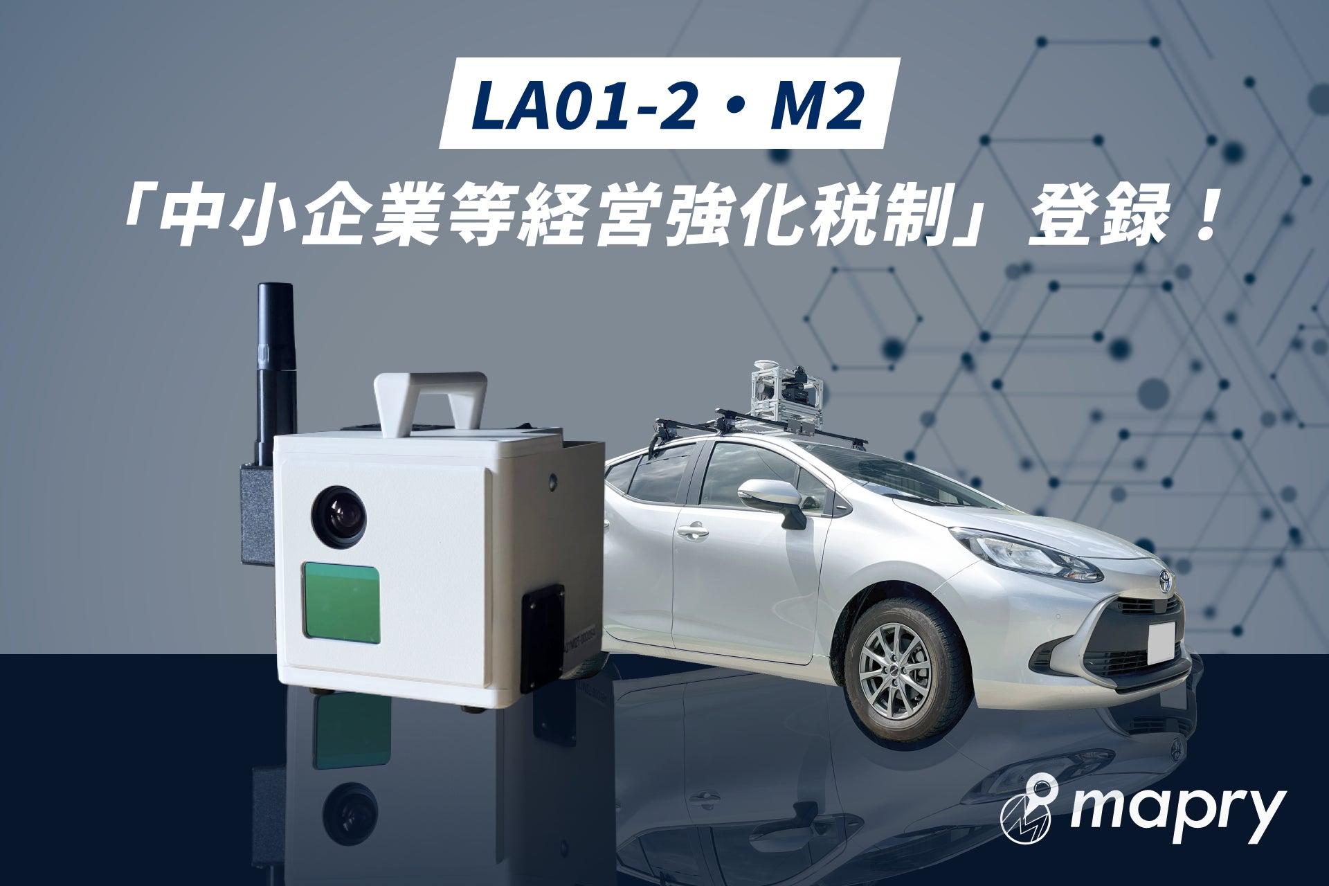 株式会社マプリィ(本社:兵庫県丹波市、代表取締役:山口 圭司)は、ハンディLiDAR「LA01‑2」とモービルマッピングシステム「M2 (※LiDAR2台搭載モデル)」が、経済産業省・中小企業庁が実施する「中小企業等経営強化税制」の対象製品として登録されたことをお知らせいたします。