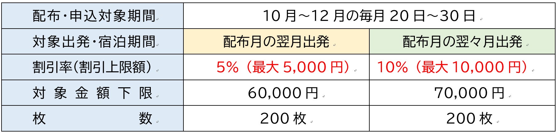 2024年10月1日(火)~2024年12月20日(金)の出発(宿泊)が対象です。