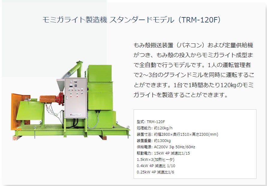 事業内容 :もみ殻固形燃料製造装置(グラインドミル)や浄⽔器などの製造・販売
