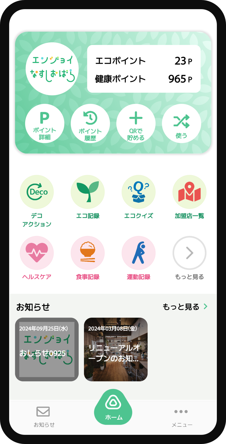 那須塩原市は、市民の健康増進を図るとともに、デジタル技術を活用した効率的かつ効果的な事業を遂行するため、2024年10月に当社がシステム提供しリリースした「エンジョイecoなすしおばら」アプリに健康ポイント機能を追加し、「エンジョイなすしおばら」アプリとしてリニューアルする運びとなりました。