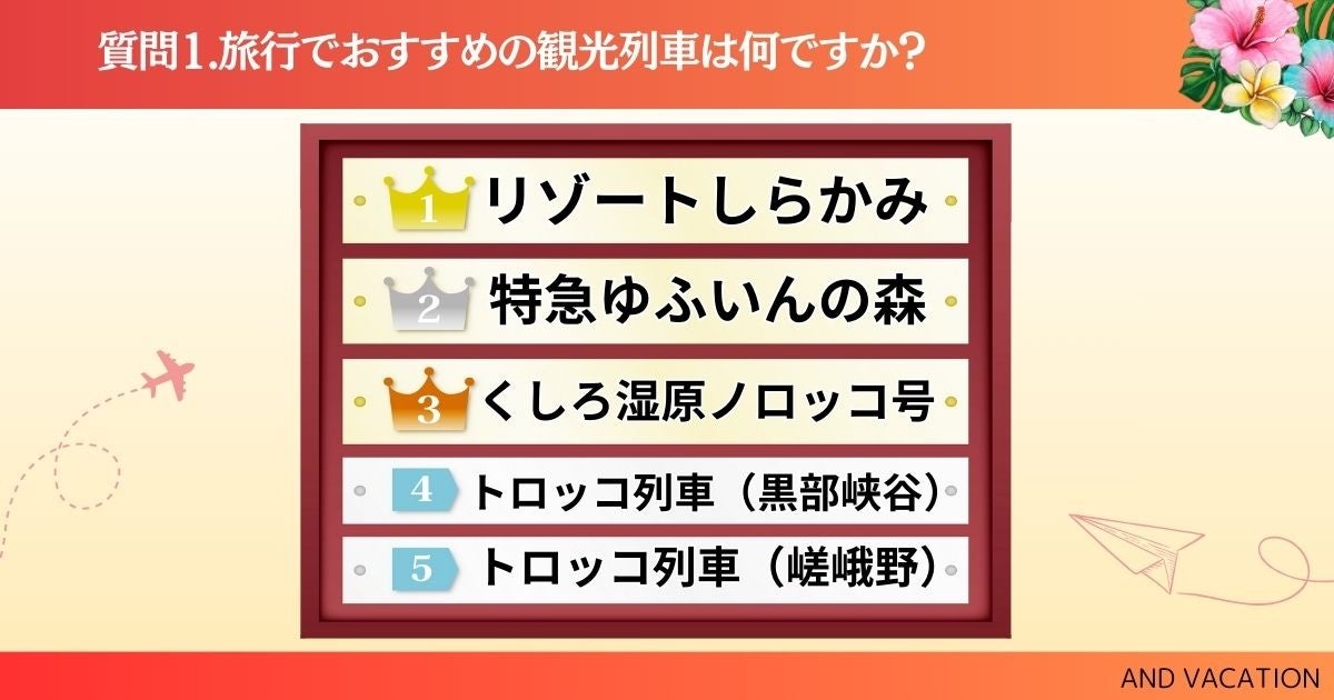 そこで、旅行でおすすめの観光列車についてアンケートで聞き取り調査をしました。ぜひ、チェックしてみてください!