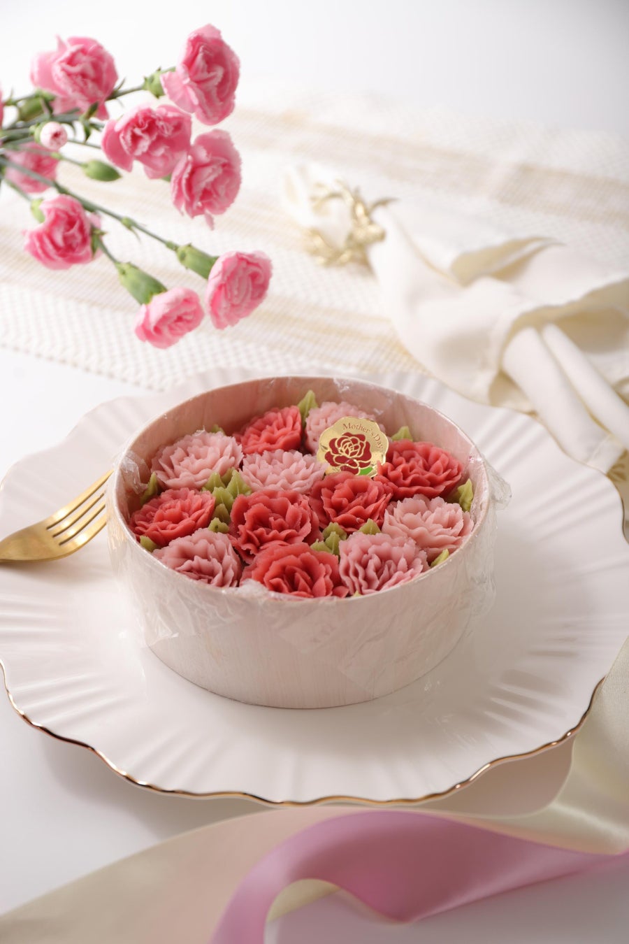 今年はカーネーションの色味をより本物に近づけ、上品で洗練された印象へと一新。