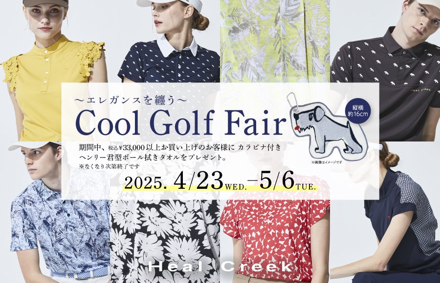 株式会社グリップインターナショナル(本社:神戸市、代表取締役会長兼社長 桑田 隆晴)が展開する、上質を知る大人のゴルファーへ向けたオリジナルゴルフウェアブランド「Heal Creek(ヒールクリーク)」は、2025年4月23日(水)~5月6日(火)の期間で「~エレガンスを纏う~ Cool Golf Fair」を開催いたします。