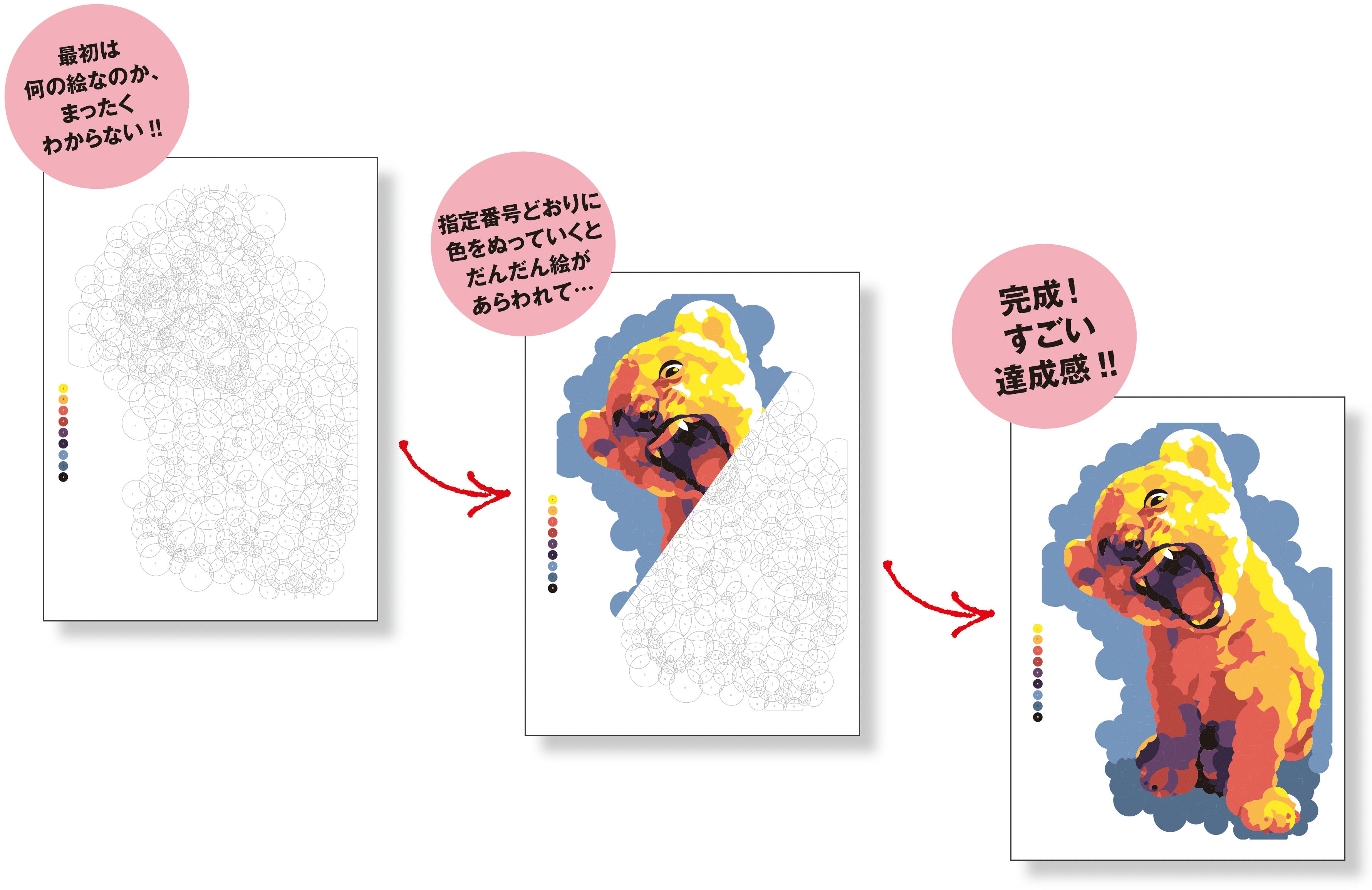 - どのパズルも、ピースがギッシリ。塗りごたえ抜群です!