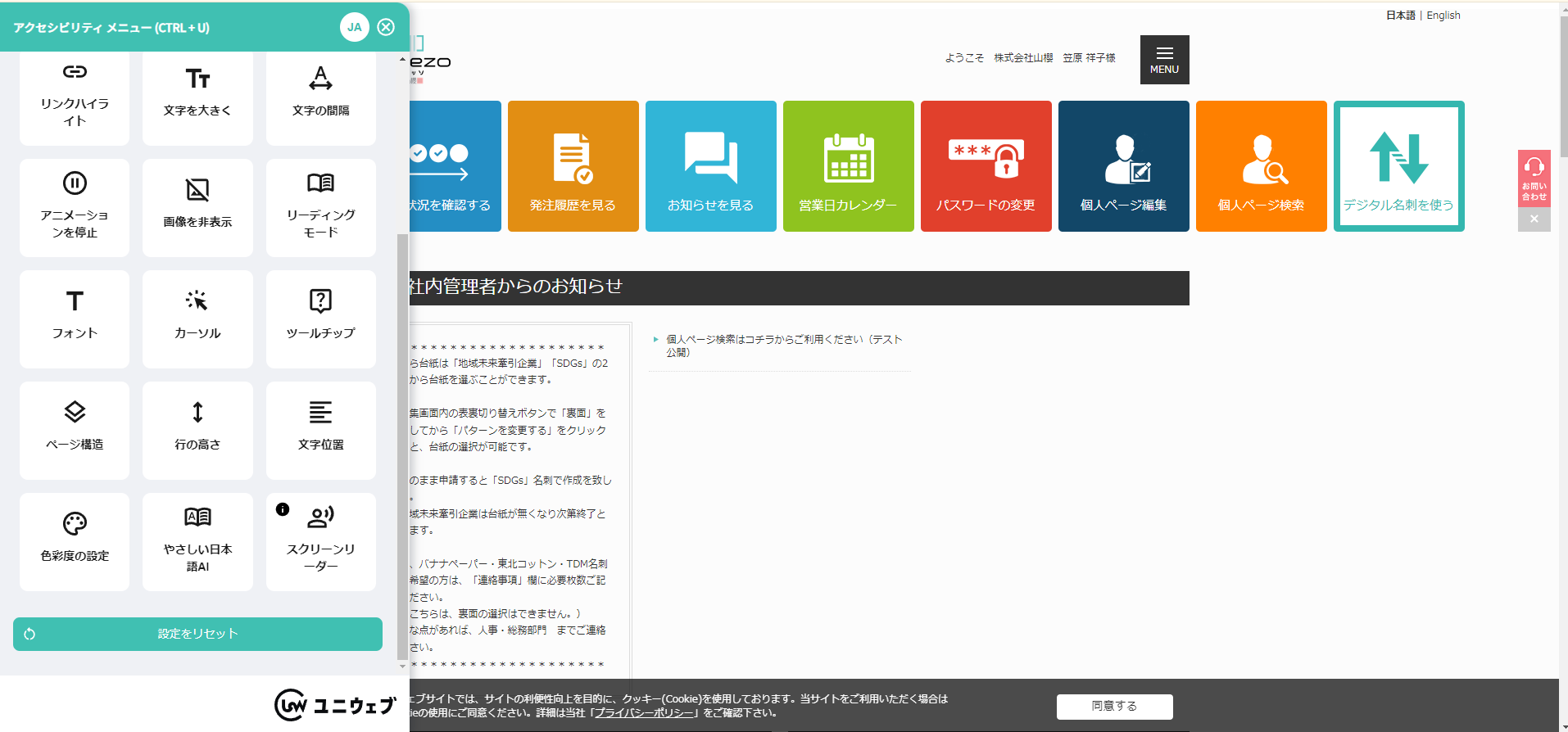 ユニウェブ、クラウド名刺発注管理サービス「corezo(コレッソ)」にウェブアクセシビリティサービスを提供開始