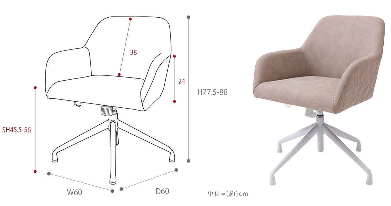 - サ イ ズ :(約)幅60cm×奥行60cm×高77.5-88cm 座面高(約)45.5-56cm