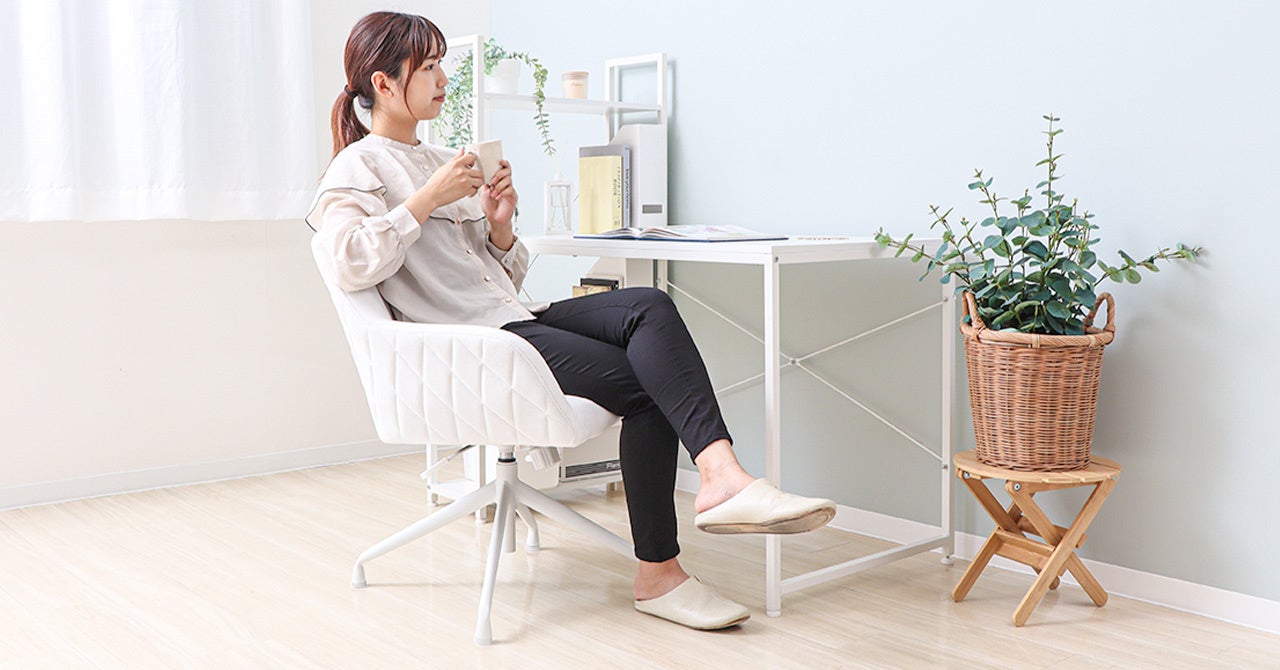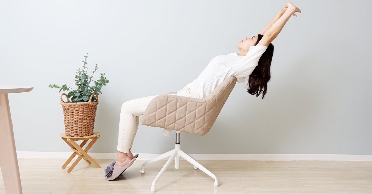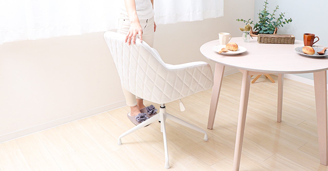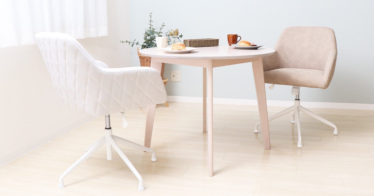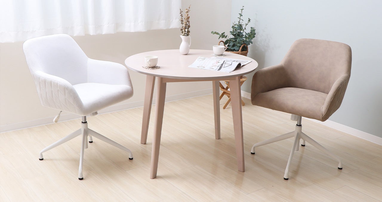 オフィス感ゼロのデザインはどんな空間にもなじみが良く、また「回転」「昇降」「ロッキング」機能がついていることで、ダイニングとテレワークの兼用としても!使いやすいチェアです。