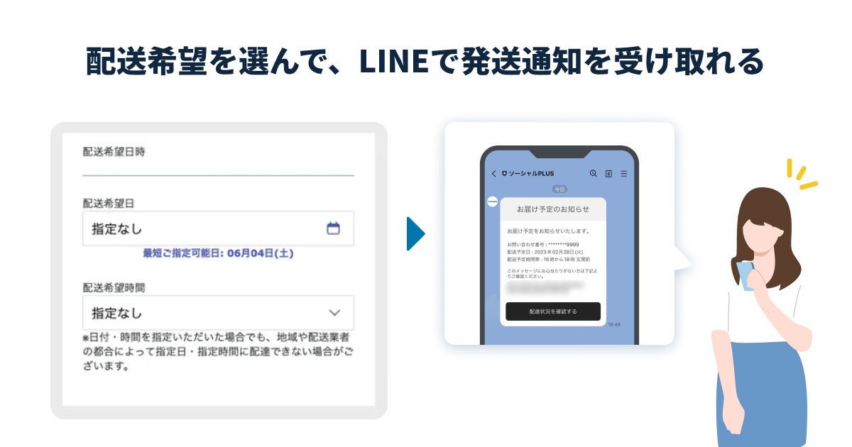 配送予定日・時間帯・置き配指定をLINE通知メッセージで配信可能に Shopifyアプリ「CRM PLUS on LINE」と「配送日時指定.amp」が連携