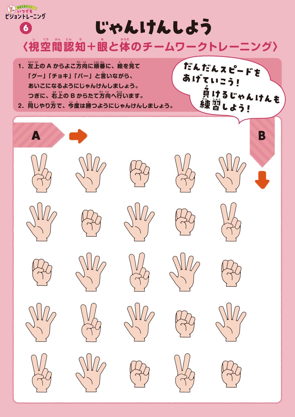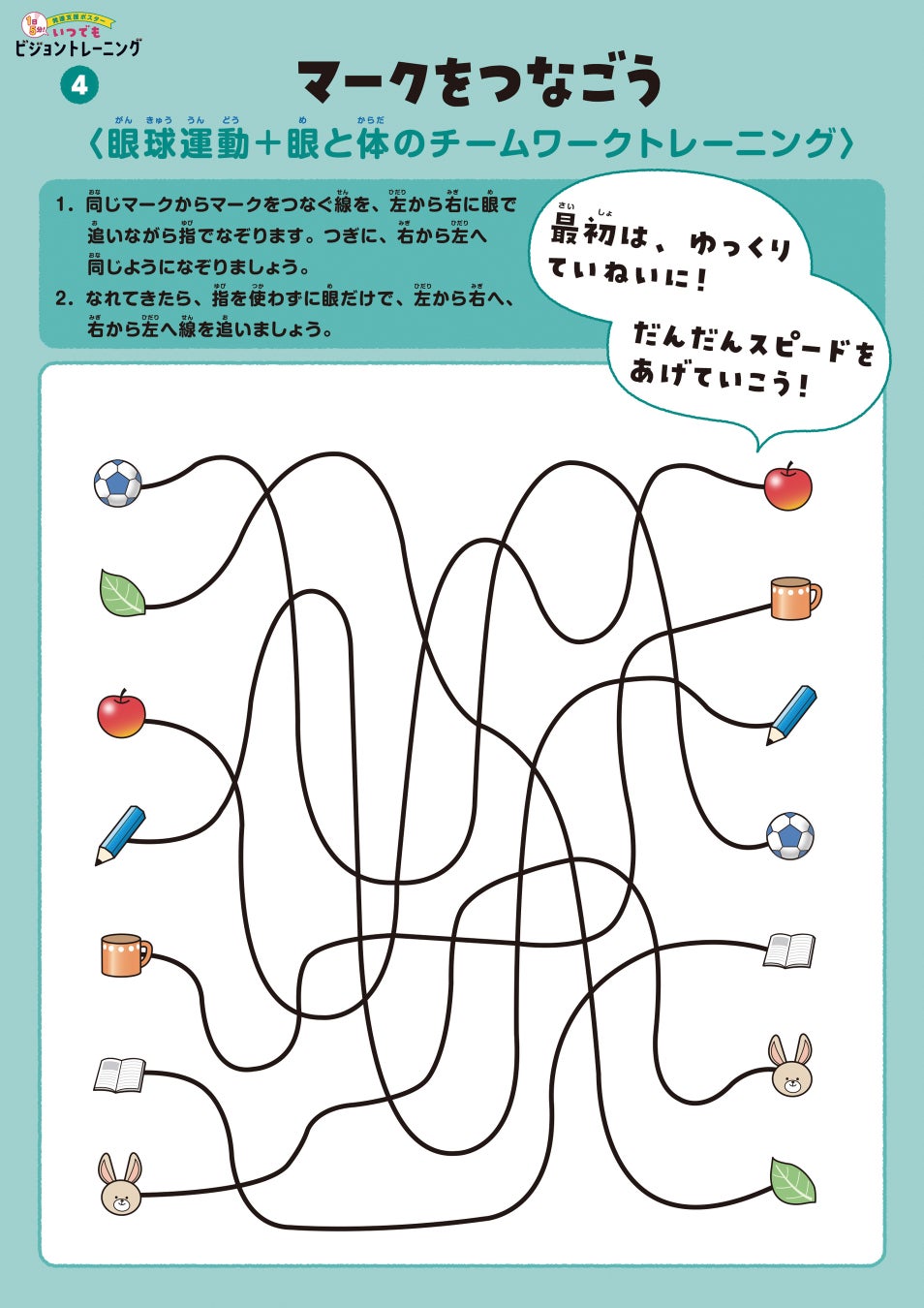 このポスターは、見る力を高める<ビジョントレーニング>がいつでも誰でもかんたんに実践できる支援教材です。