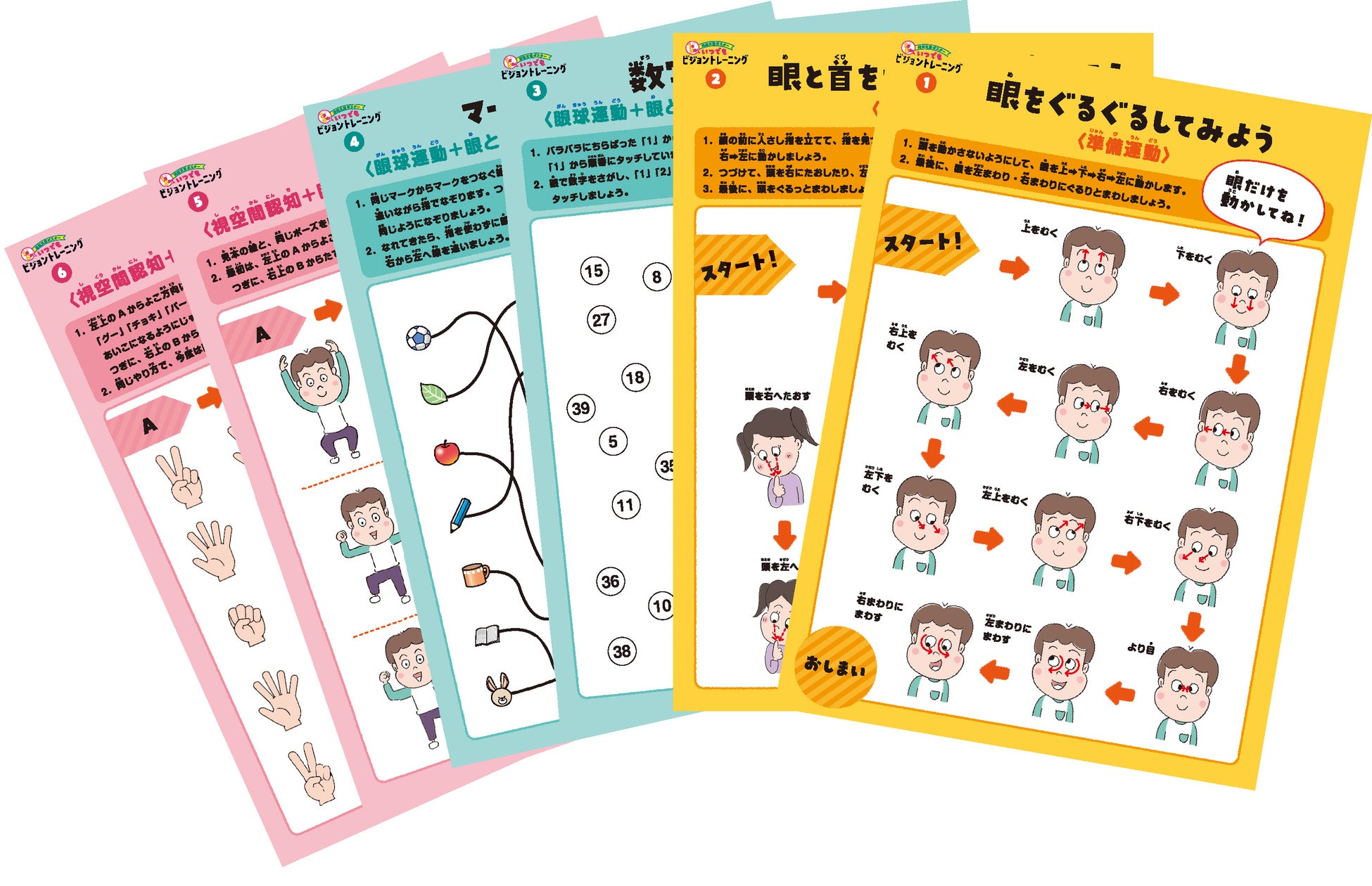 「朝の会の時間にクラスで」、「お風呂に入る前に親子で」など、スキマ時間にポスターを見ながら1日5分取り組むだけで見る力がぐんぐん向上!学習・運動・生活動作の苦手を改善し、子どものやる気と自信が育ちます。