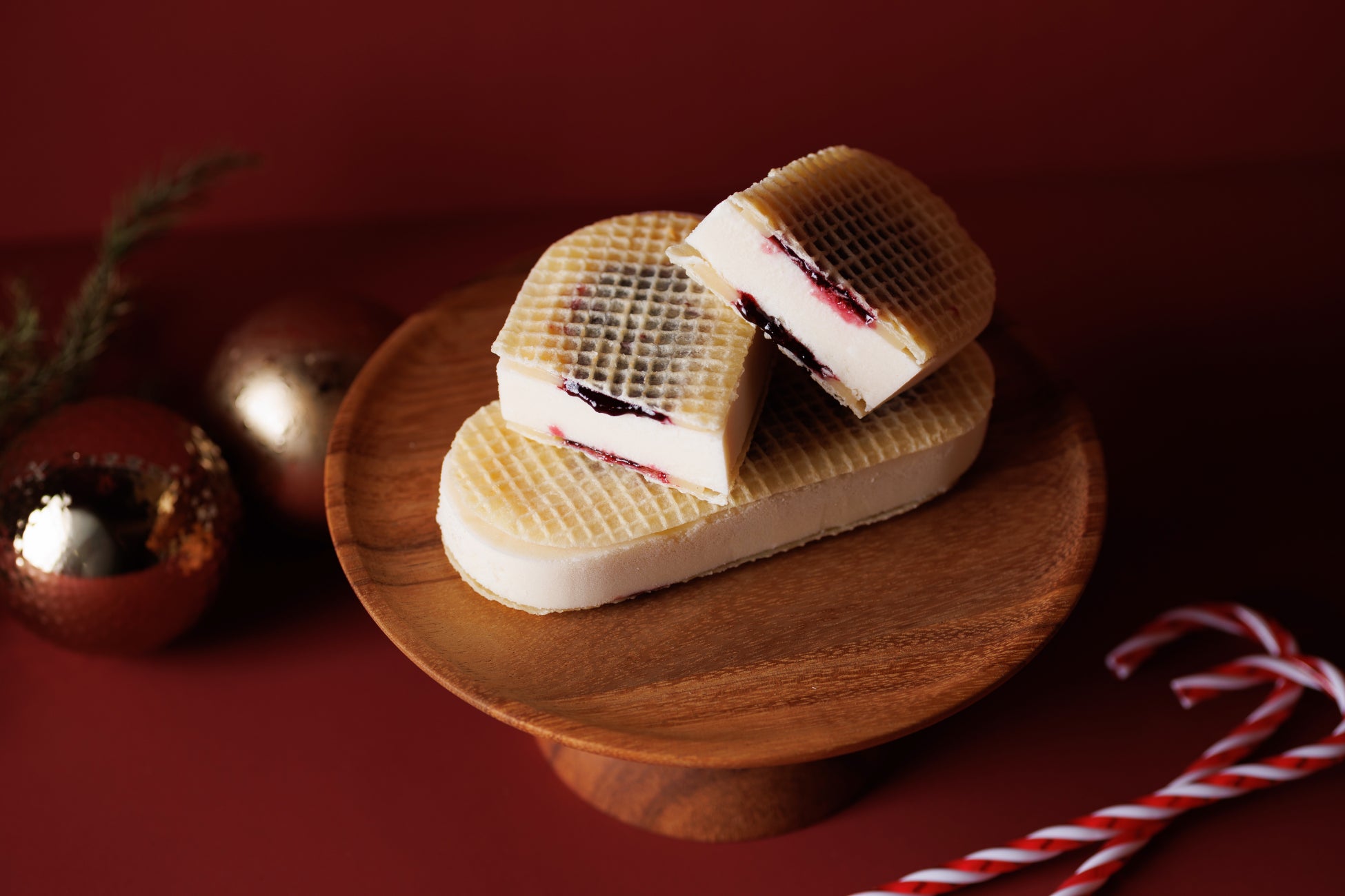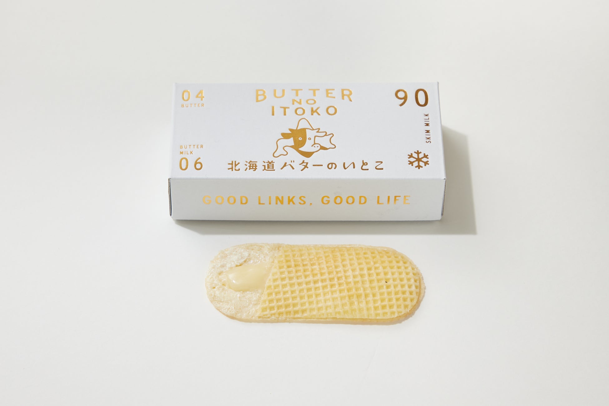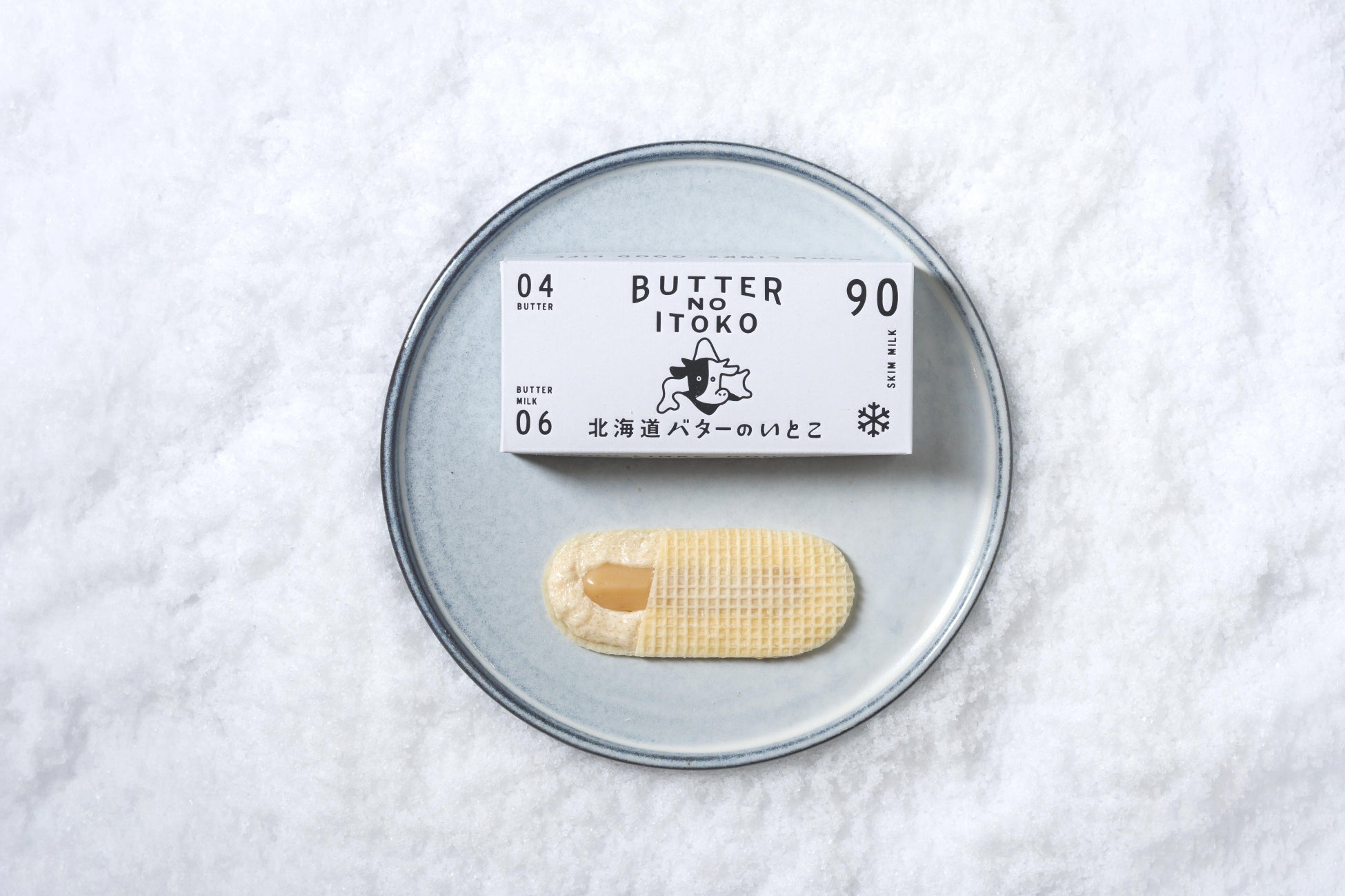 北海道で作った"北海道バターのいとこ"限定の白いゴーフレット生地を使用した、この冬限定の特別ないとこのアイス。
