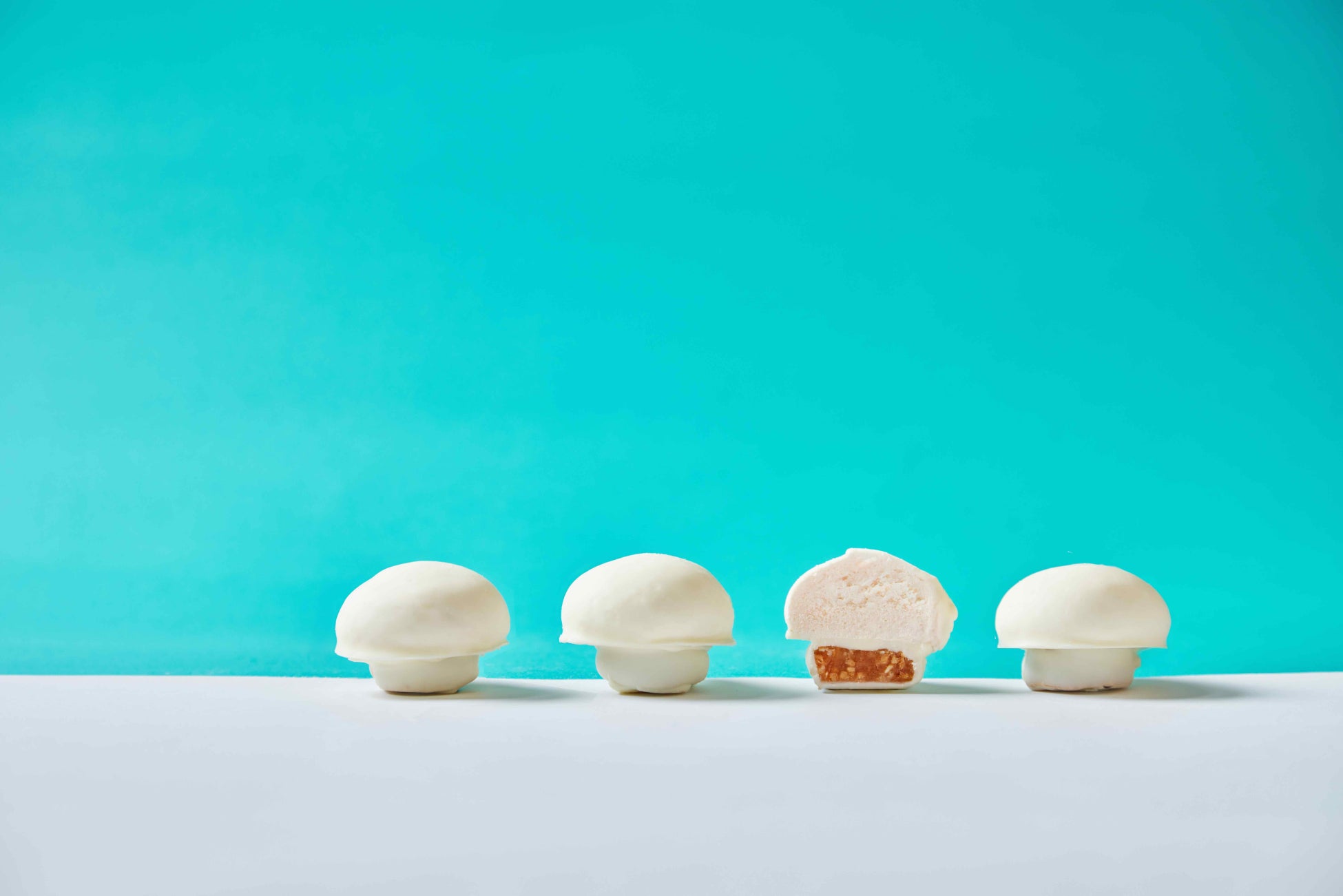 「さく、シュワッ、とろ~」メレンゲとブラウンチーズのとろける食感がおいしい、北海道限定のお菓子SNOWDOMEが、ホワイトチョコに包まれ新登場。